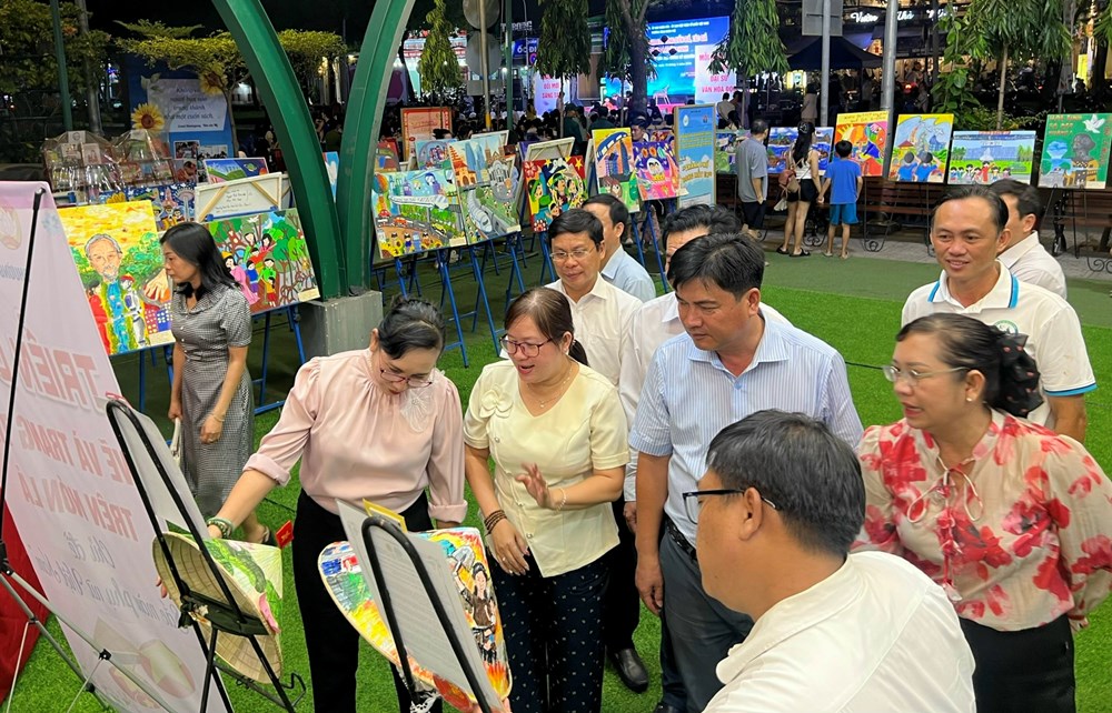 Cụ thể, không gian trưng bày các tác phẩm với chủ đề “Hào khí Lạc Hồng” diễn ra từ ngày 2.4 đến 4.5; Triển lãm “Bìa sách em yêu” từ ngày 11.4 đến 22.4; Triển lãm tranh “Nét vẽ xanh TP.HCM” từ ngày 8.4 đến 8.5; Triển lãm 68 bức ảnh “Sài Gòn – Thành phố Hồ Chí Minh trên đường phát triển” từ ngày 27.4 đến 8.5.