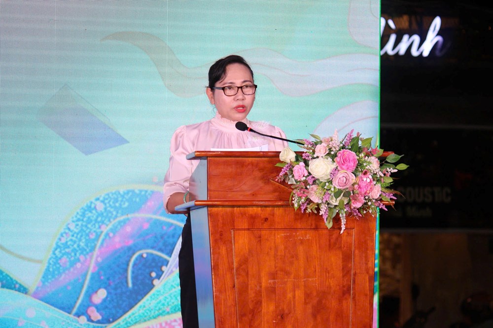 Bà Cao Thị Ngọc Châu, Chủ tịch UBND phường Tăng Nhơn Phú phát biểu khai mạc Ngày Sách và Văn hóa đọc Việt Nam lần thứ 5, năm 2026 tại phường Tăng Nhơn Phú