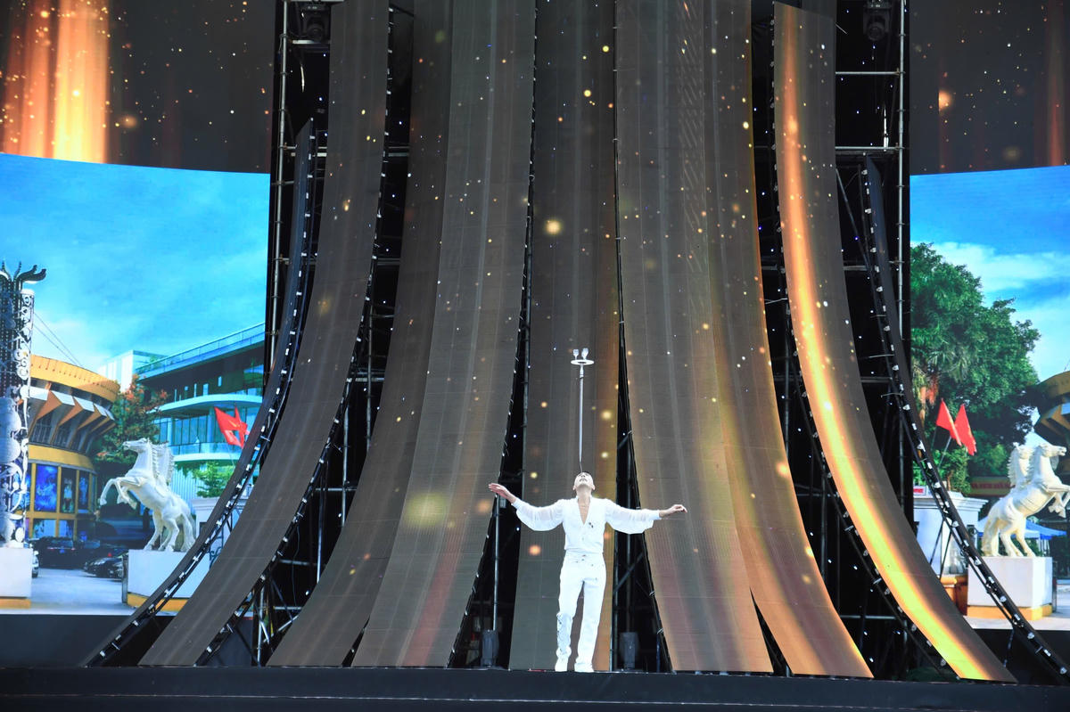 Nghệ sĩ chinh phục con lăn trong những động tác giữ thăng bằng chuẩn xác, từng nhịp chuyển động uyển chuyển và đầy thử thách, thể hiện bản lĩnh, sự tập trung cao độ và kỹ thuật điêu luyện của nghệ thuật xiếc truyền thống. Ảnh: Phạm Sỹ.
