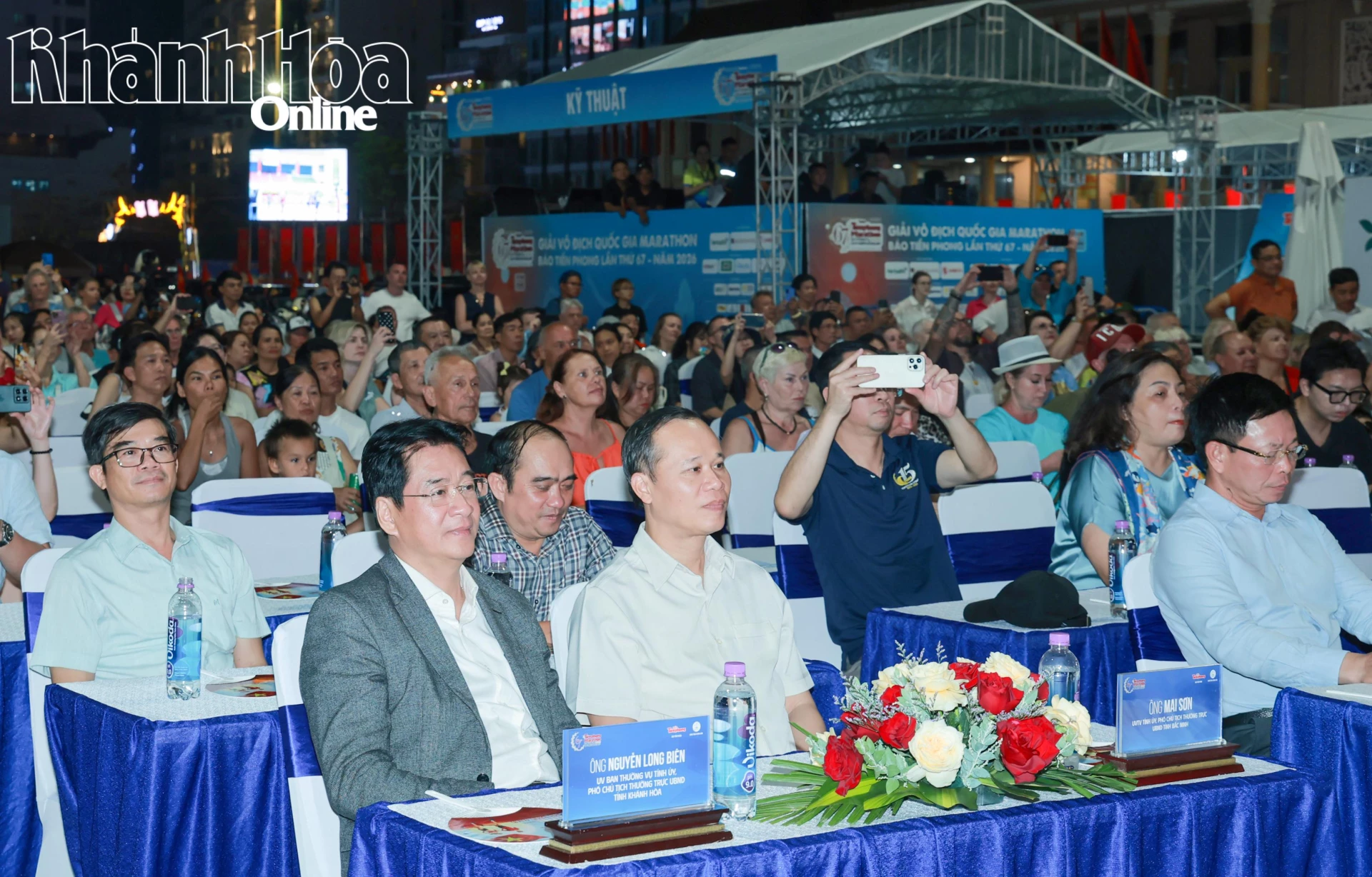 Tối 28-3, tại sân khấu Quảng trường 2 tháng 4 (phường Nha Trang) diễn ra chương trình nghệ thuật “Đón ánh bình minh”. Đây là một trong những hoạt động điểm nhấn của Giải vô địch quốc gia Marathon - Báo Tiền Phong lần thứ 67 năm 2026, được tổ chức tại Khánh Hòa. Tham dự chương trình nghệ thuật có các đồng chí: Nguyễn Long Biên - Ủy viên Ban Thường vụ Tỉnh ủy, Phó Chủ tịch Thường trực UBND tỉnh; Mai Sơn - Ủy viên Ban Thường vụ Tỉnh ủy, Phó Chủ tịch Thường trực UBND tỉnh Bắc Ninh; nhà báo Phùng Công Sưởng - Tổng Biên tập Báo Tiền Phong.