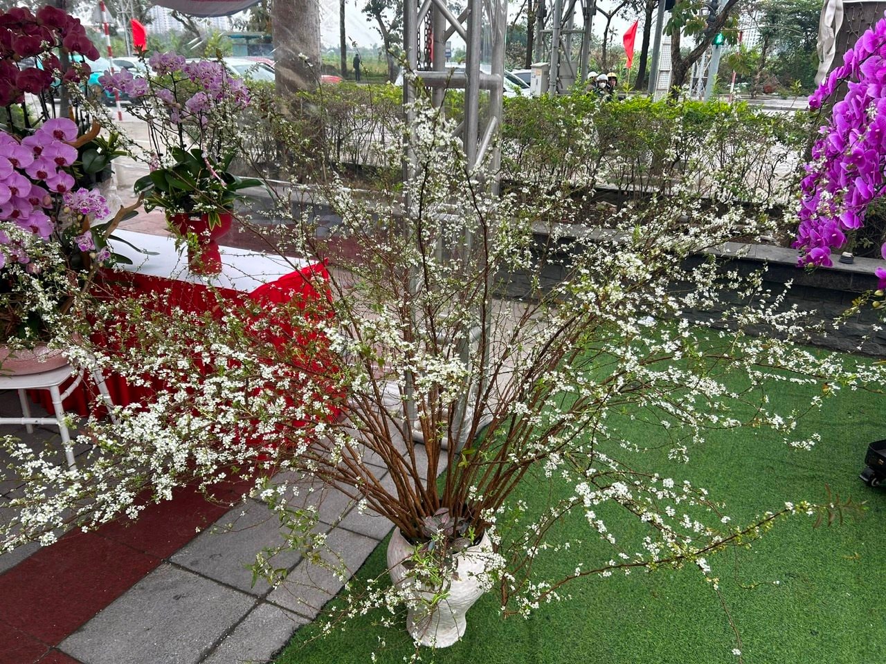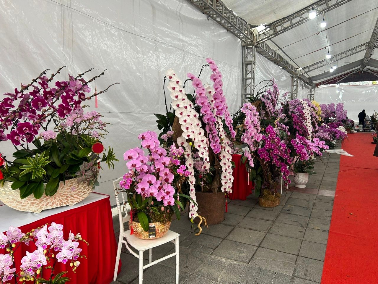 Tại trục đường Lê Lợi giao cắt với đường Nguyễn Duy Hiệu (phường Hạc Thành) đã có đơn vị làm rạp, bày bán đủ loại hoa lan Đà Lạt. Hoa được thiết kế, bày với nhiều loại chậu và các tiểu cảnh khác nhau. Tính trung bình từ 350-500 nghìn đồng/cành. Mấy hôm nay do đang là ngày đi làm và thời tiết mưa rét nên lượng người tới xem, mua lan còn lác đác.
