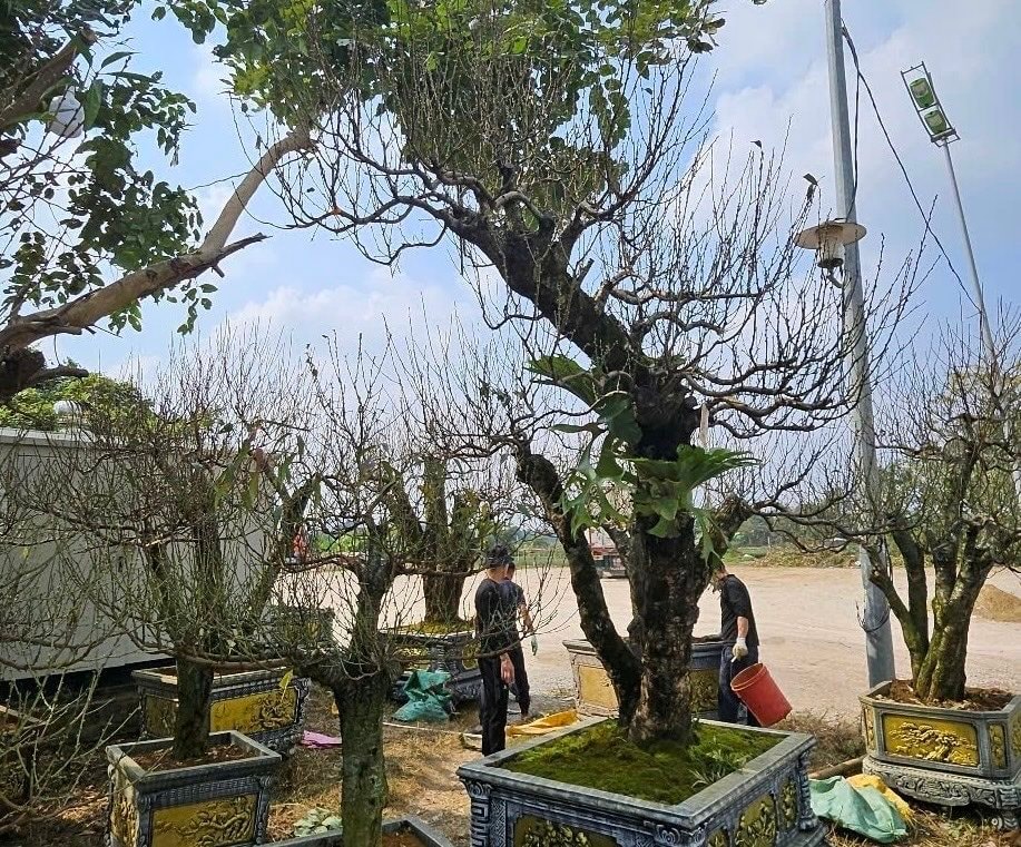 Hoa đào được tập kết xuống các tuyến phố.