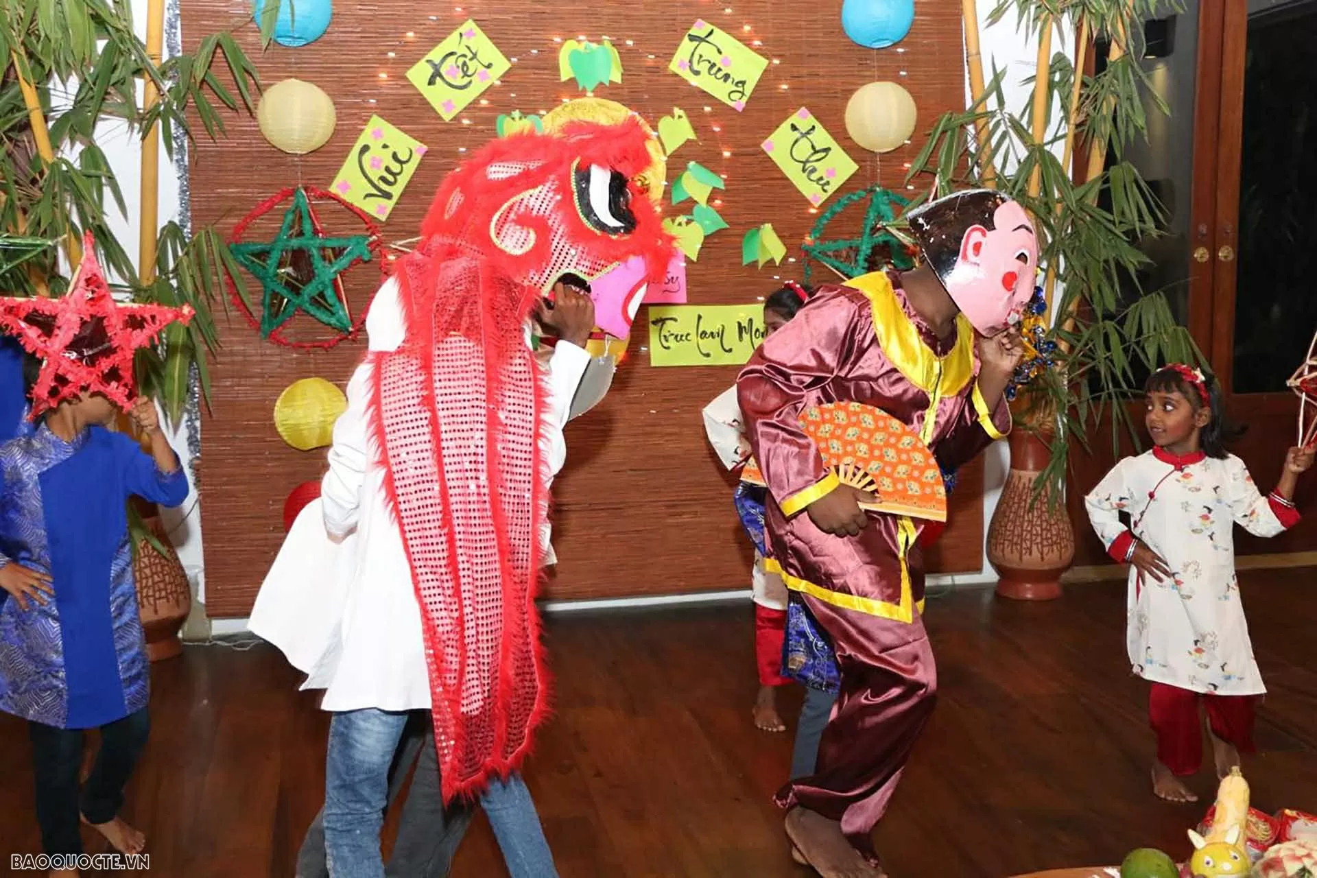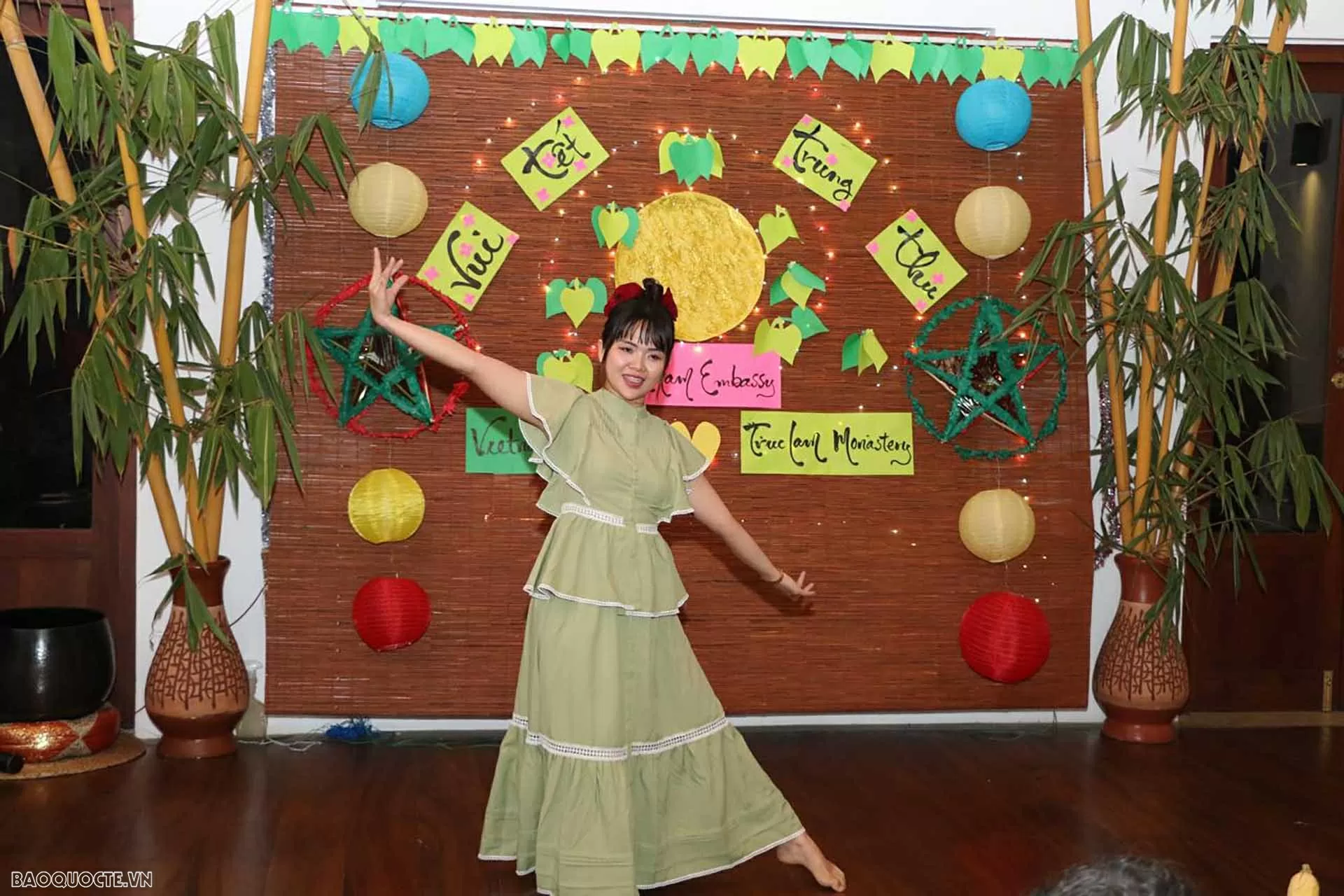 Các em thiếu nhi Sri Lanka học tiếng Việt cùng con em cộng đồng người Việt đã tự tin mang đến những tiết mục ca múa đặc sắc, từ điệu múa lân truyền thống đến những khúc hát quen thuộc như Chiếc đèn ông sao, Tết Trung thu rước đèn đi chơi, Bống bống bang bang, Nối vòng tay lớn… , thể hiện tinh thần gắn kết không biên giới của tuổi thơ hai dân tộc, khiến không gian Thiền viện trở nên rộn ràng và xúc động. Đặc biệt, sự xuất hiện của chị Hằng và chú Cuội đã đưa khán giả trở về với thế giới cổ tích lung linh của đêm rằm.