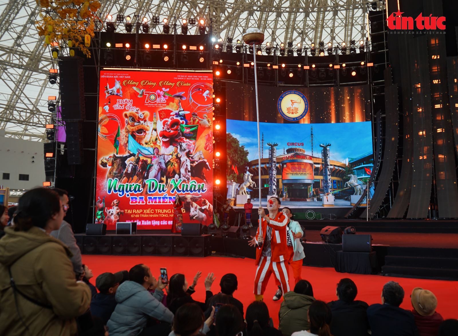 Không kém phần sôi động, Liên đoàn Xiếc Việt Nam “chiêu đãi” khán giả bữa tiệc xiếc mãn nhãn, giàu kịch tính. Những màn trình diễn như Thăng bằng trên thang, Cầu bật bật TT, Lắc vòng nghệ thuật, Tung hứng trên chân, Ngày hội vùng cao, Thăng bằng kiếm trên thang… liên tiếp khuấy động không gian hội chợ, mang đến tiếng cười, sự hồi hộp và những tràng pháo tay không ngớt. Trong nhịp điệu xuân rộn ràng, xiếc trở thành điểm nhấn cảm xúc, kết nối khán giả ở mọi lứa tuổi.