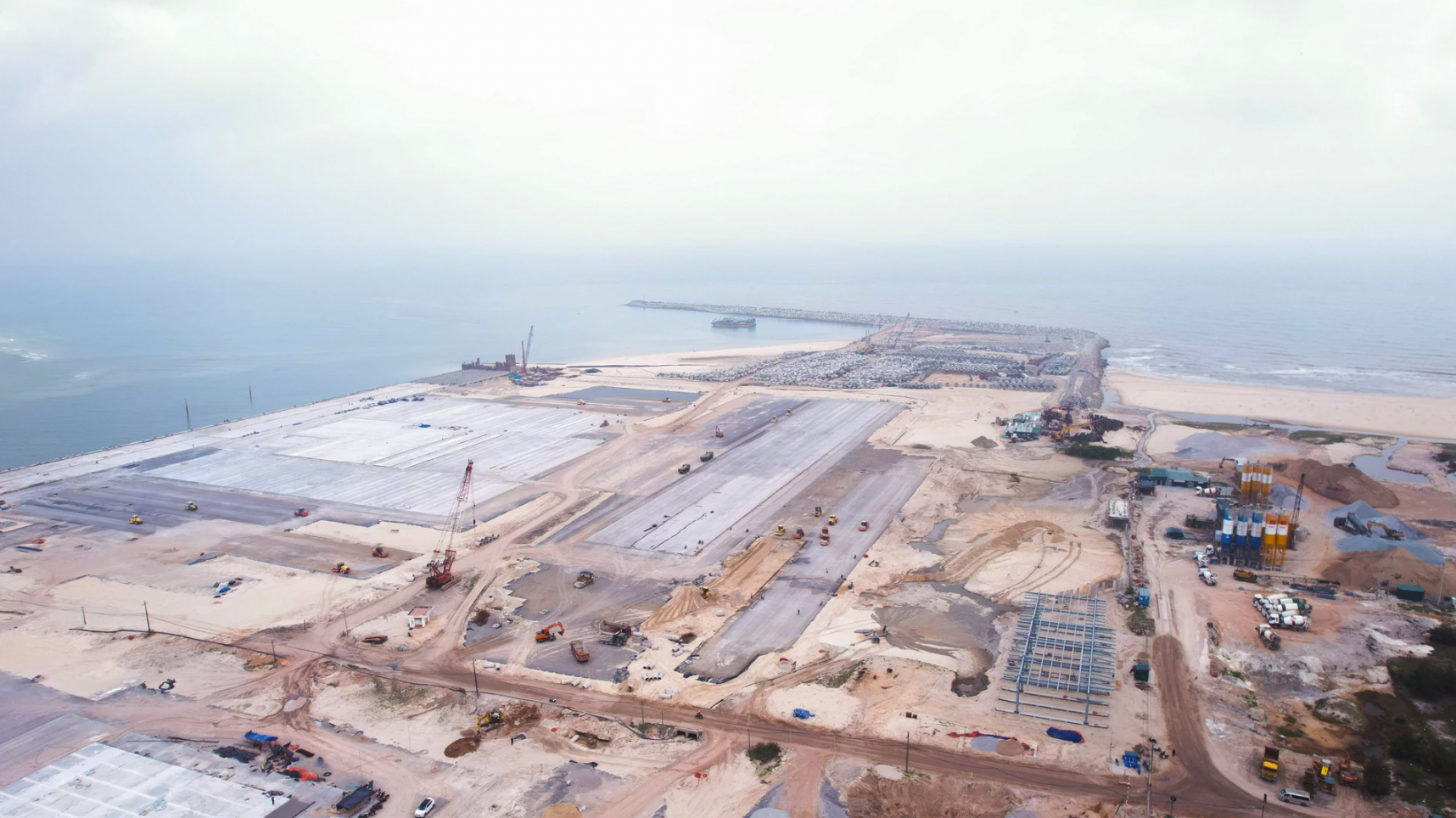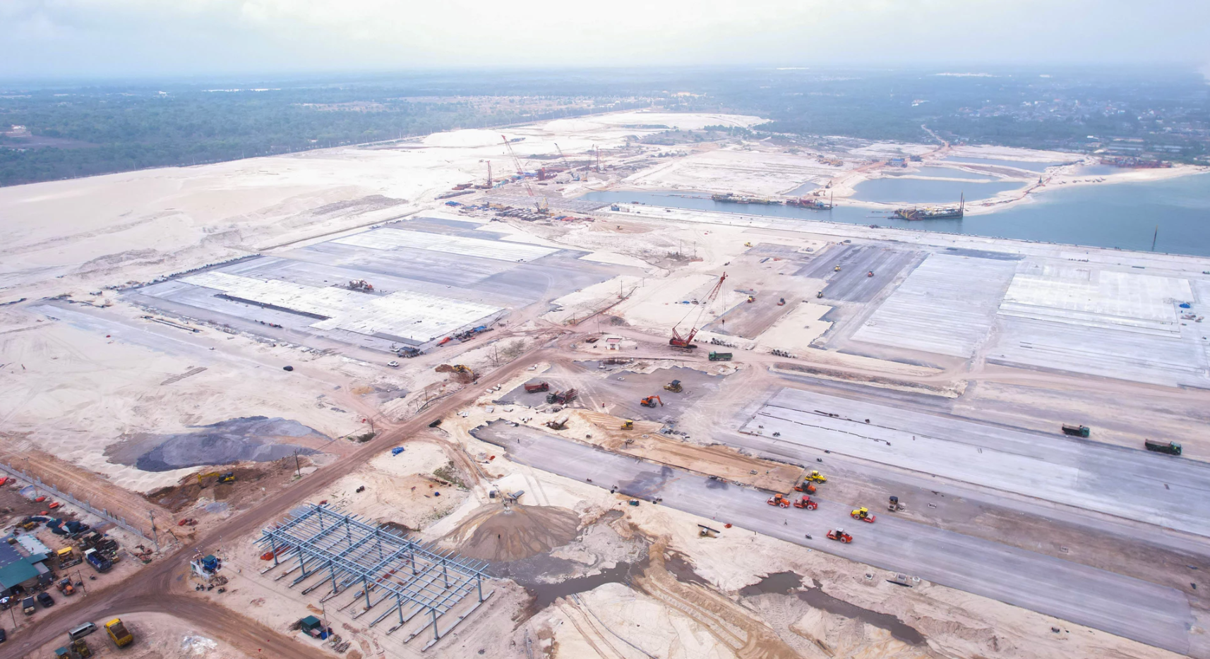 Toàn cảnh thi công dự án Khu bến cảng Mỹ Thủy vào sáng ngày 24/2 - Ảnh: L.T