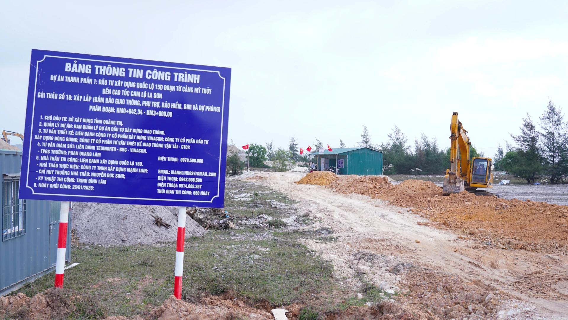 Tại điểm đầu dự án Đầu tư xây dựng Quốc lộ 15D đoạn từ Cảng Mỹ Thủy đến cao tốc Cam Lộ-La Sơn, ngay sau lễ khởi công và kỳ nghỉ Tết, nhà thầu đã huy động nhân lực và máy móc khẩn trương san gạt mặt bằng, đắp nền đường.