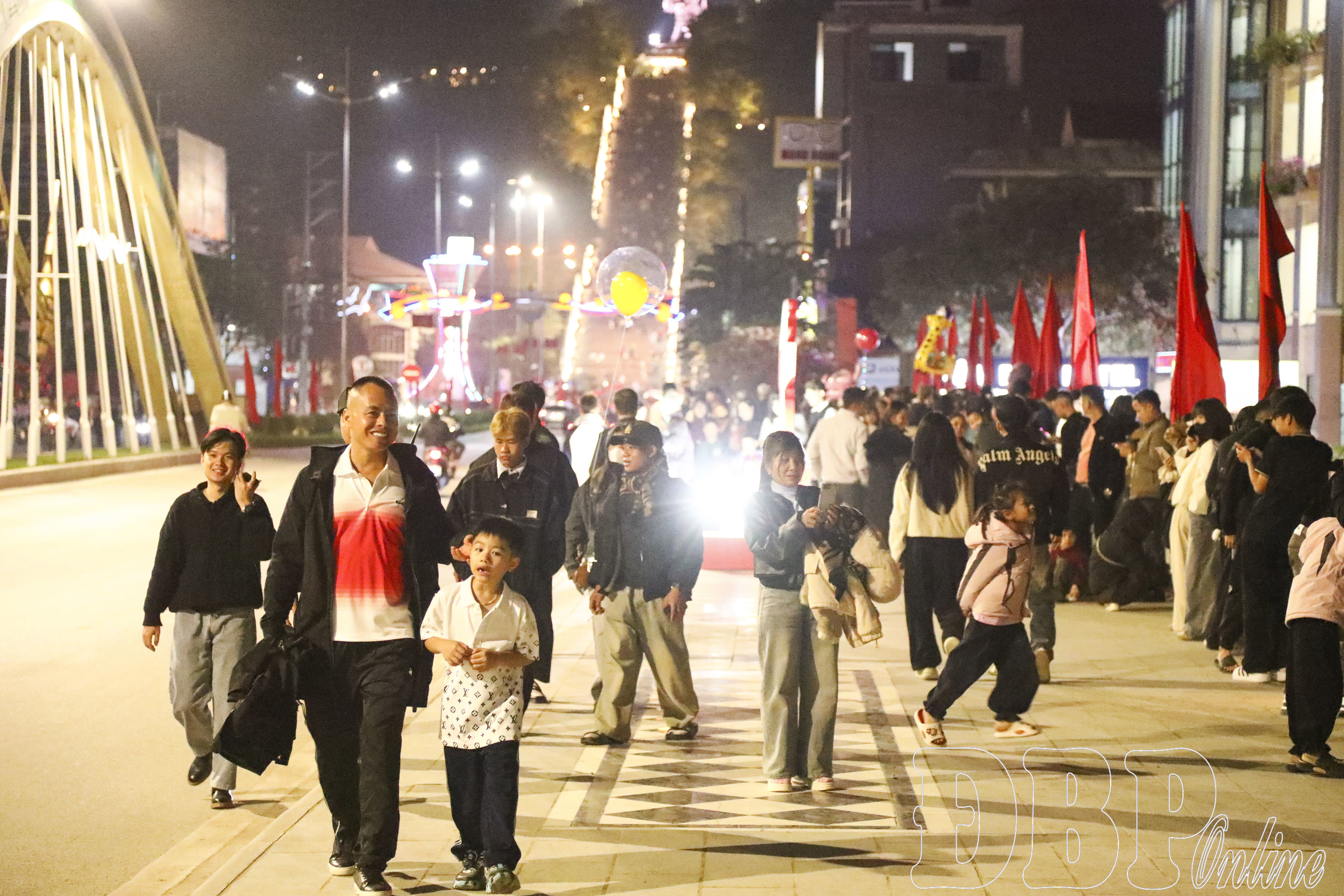 Tại khu vực cầu Mường Thanh, nơi được xem là tâm điểm của đêm giao thừa với màn bắn pháo hoa, niềm vui của người dân càng thể hiện rõ nét. Từng dòng người kiên nhẫn chờ đợi, ánh mắt hướng về bầu trời đêm với sự háo hức khó giấu. Trong khoảnh khắc ấy, thời gian dường như chậm lại, nhường chỗ cho sự mong đợi và cảm xúc dâng trào.