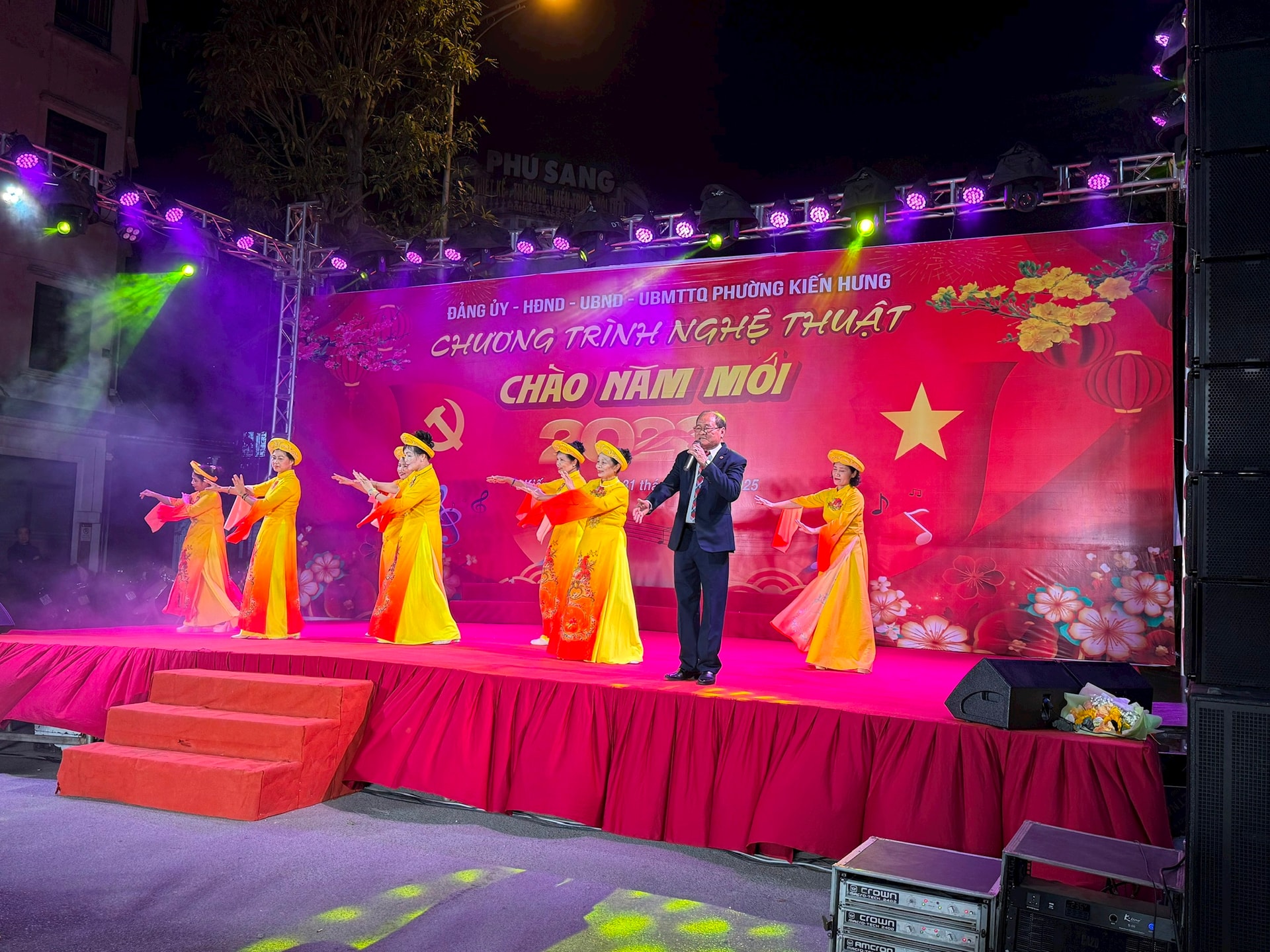 Còn tại khu vực trụ sở UBND phường Kiến Hưng (Khu đô thị mới Văn Phú), Đảng ủy, HĐND, UBND, Ủy ban MTTQ Việt Nam phường Kiến Hưng tổ chức chương trình nghệ thuật chào năm mới 2026.