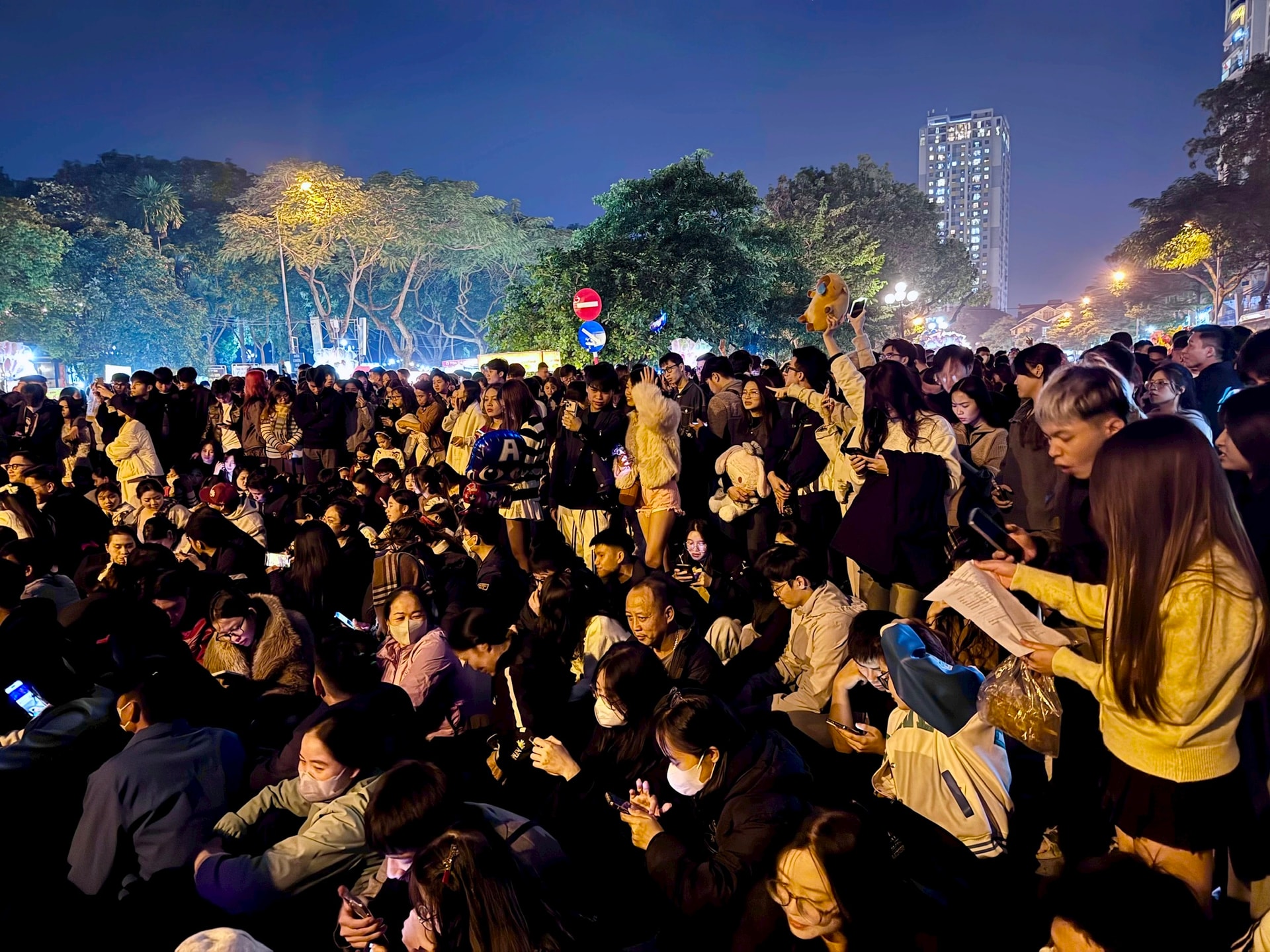 Trên các cung đường của Thủ đô, càng về khuya, người dân đổ về các điểm bắn pháo hoa trên địa bàn thành phố càng đông. Trong đó, tại khu vực hồ Văn Quán, phường Hà Đông (điểm bắn pháo hoa số 6), từ 20h ngày 31-12-2025, người dân đã ngồi kín các không gian quanh hồ. Công tác an ninh trật tự được bảo đảm, ai nấy đều giữ trật tự.