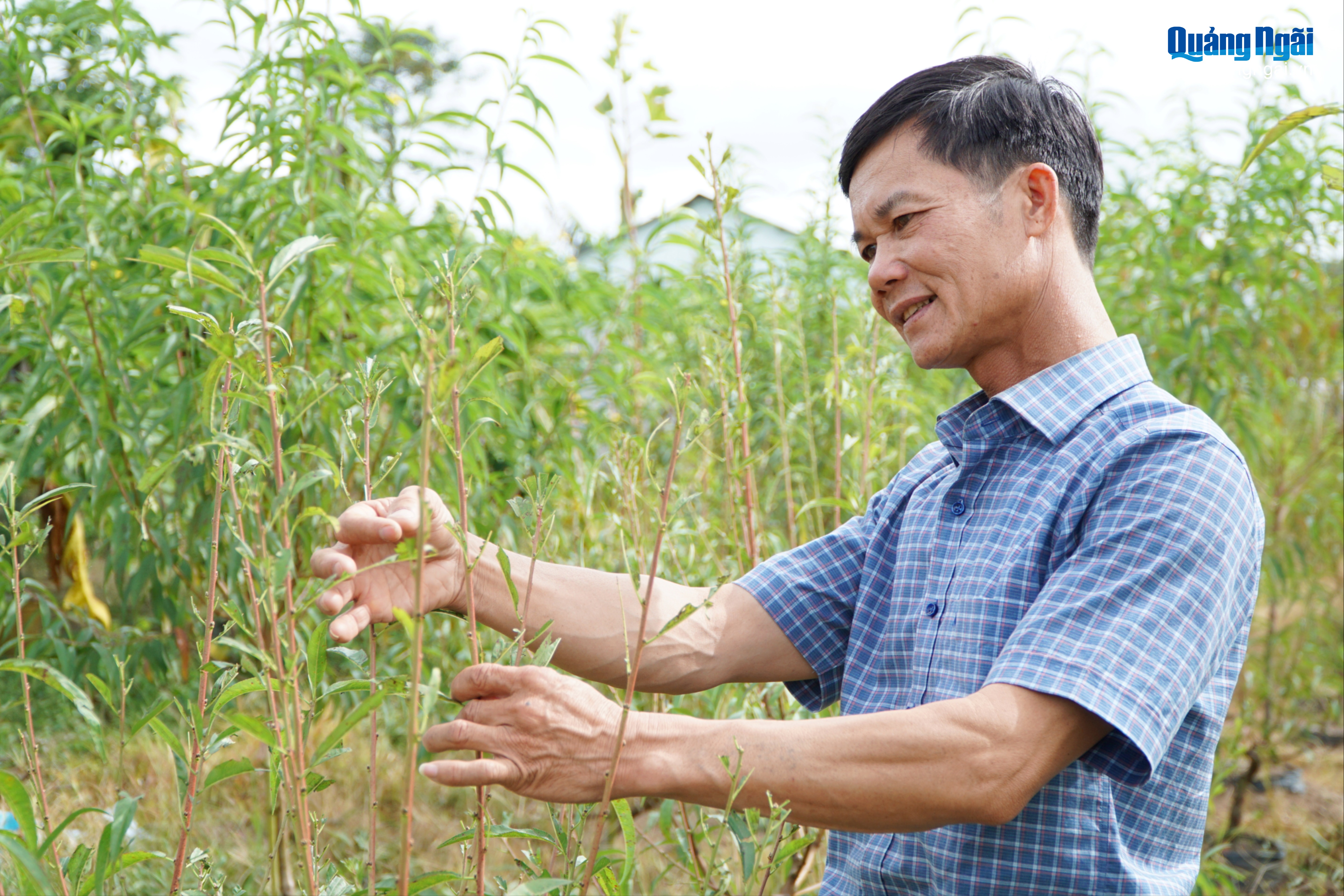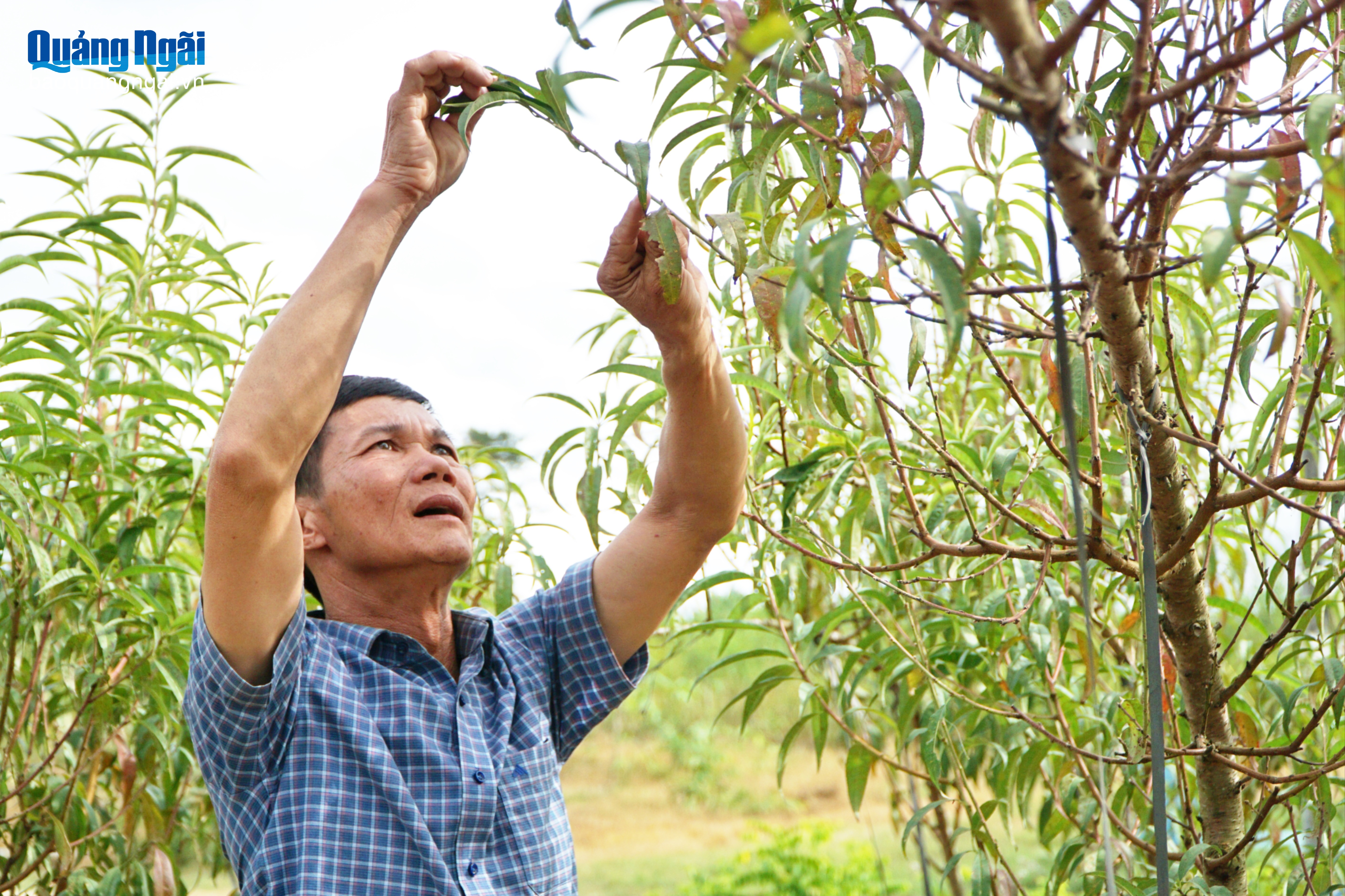 Ở thôn 1, xã Đăk Mar, ông Vũ Quang Thành đang gấp rút tuốt lá, tỉa cành cho vườn đào của mình. Gắn bó với hoa đào hơn 20 năm, ông Thành thuộc đặc tính của loài hoa này như chính bản thân mình.