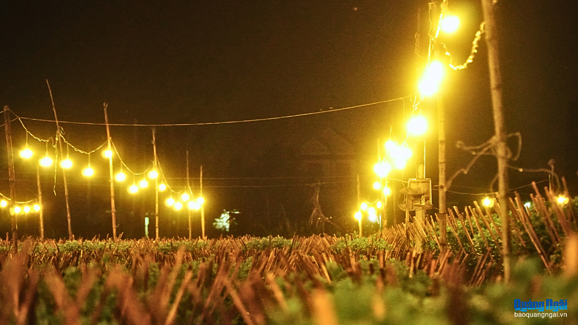 Các hộ trồng hoa dùng bóng 12W - 20W, treo trên trụ tre, kéo dây điện từ nhà ra vườn. Một vườn rộng 500m2 lắp khoảng 45 bóng đèn.