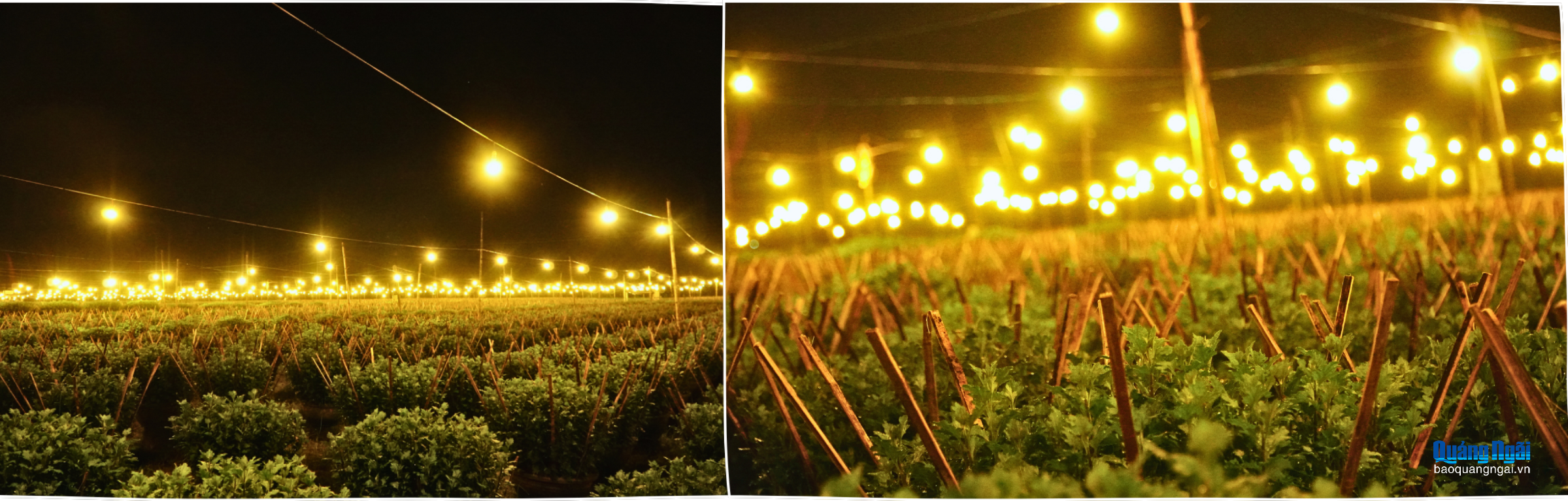 Người dân ở làng hoa Nghĩa Hiệp đã đầu tư hệ thống đèn điện, thắp sáng hàng chục nghìn bóng đèn “biến đêm thành ngày”, đánh thức không cho hoa cúc “ngủ vùi”, để hoa phát triển, nở đúng dịp tết Nguyên đán.