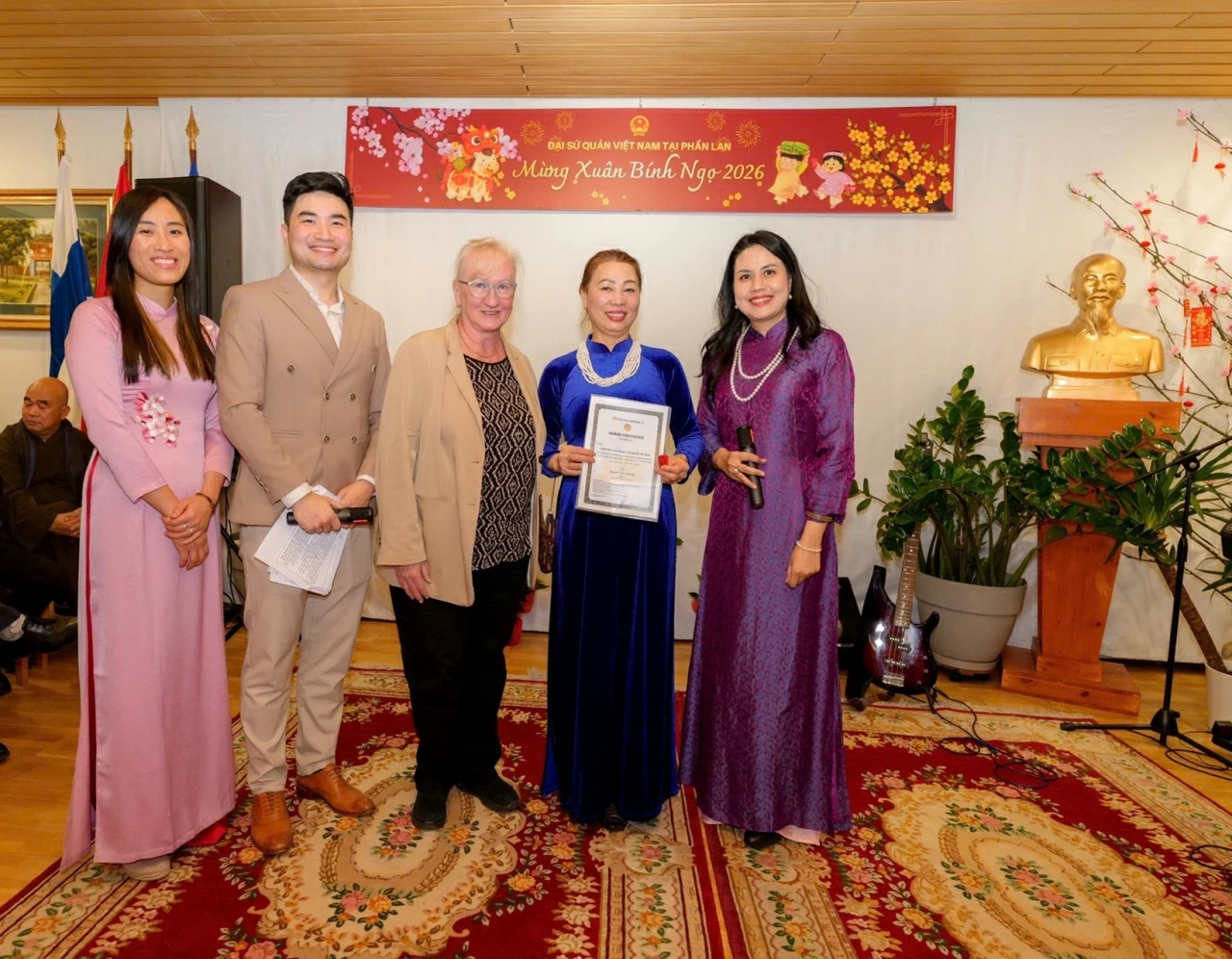 Tham dự sự kiện có gần 200 khách mời là đại diện các hội, nhóm người Việt cùng đông đảo bà con kiều bào đến từ nhiều địa phương trên khắp Phần Lan đang sinh sống, học tập và làm việc tại đây.