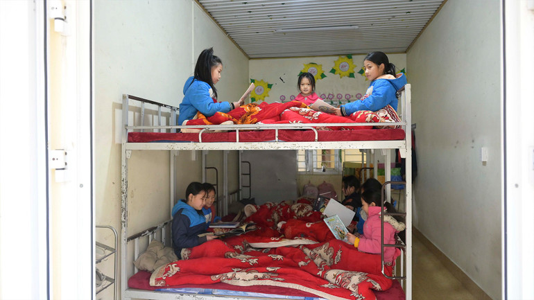 Khu bán trú cho học sinh Trường tiểu học San Sả Hồ cũng được tăng cường thêm chăn và thường xuyên có giáo viên kiểm tra, nhắc nhở các em việc giữ ấm.