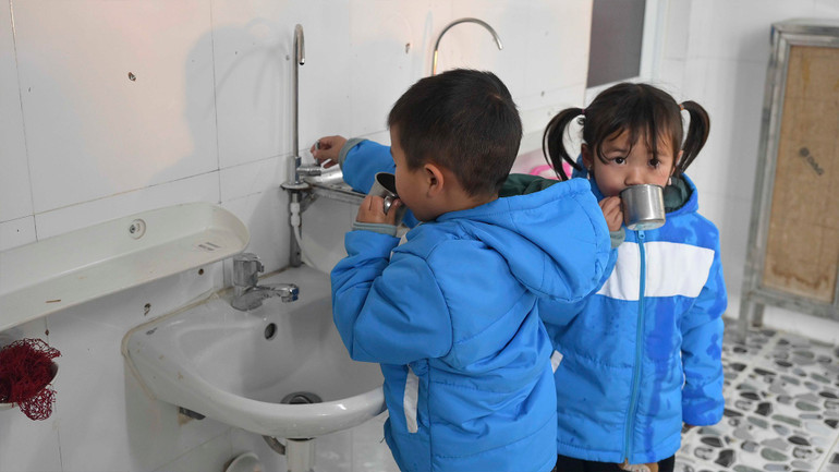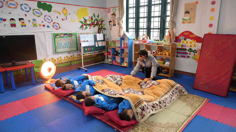 Là đối tượng trẻ nhỏ nên sức khỏe của các em được quan tâm đặc biệt, mọi hoạt động ăn uống, sinh hoạt đều được thực hiện trong phòng để giữ ấm.