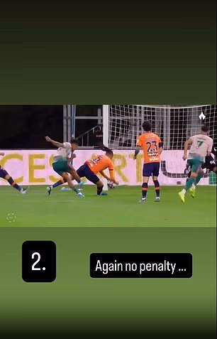 Toney đăng tải những tình huống trọng tài từ chối phạt đền đáng ngờ. ẢNH: IVAN TONEY