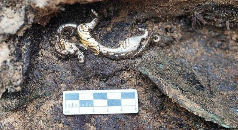 Trong lăng mộ này, các chuyên gia tìm thấy móc thắt lưng bằng ngọc bích, đồ trang sức, cốc gỗ. Ảnh: @Tiến sĩ Lan Wanli.