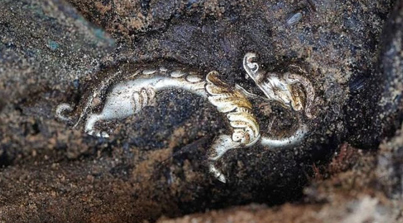 Các kỹ thuật thăm dò, phân tích khảo cổ học chuyên sâu cho thấy, hai bức tượng rồng làm từ chất liệu bạc, nhưng được mạ vàng. Ảnh: @Tiến sĩ Lan Wanli.