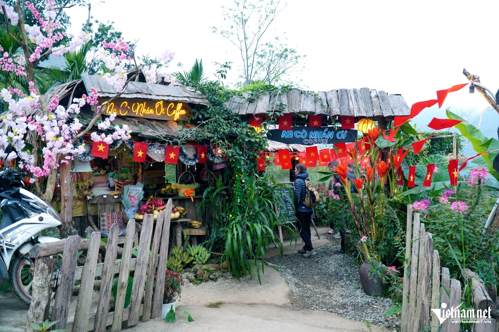 Các tuyến đường ở Pù Luông được treo cờ rực rỡ