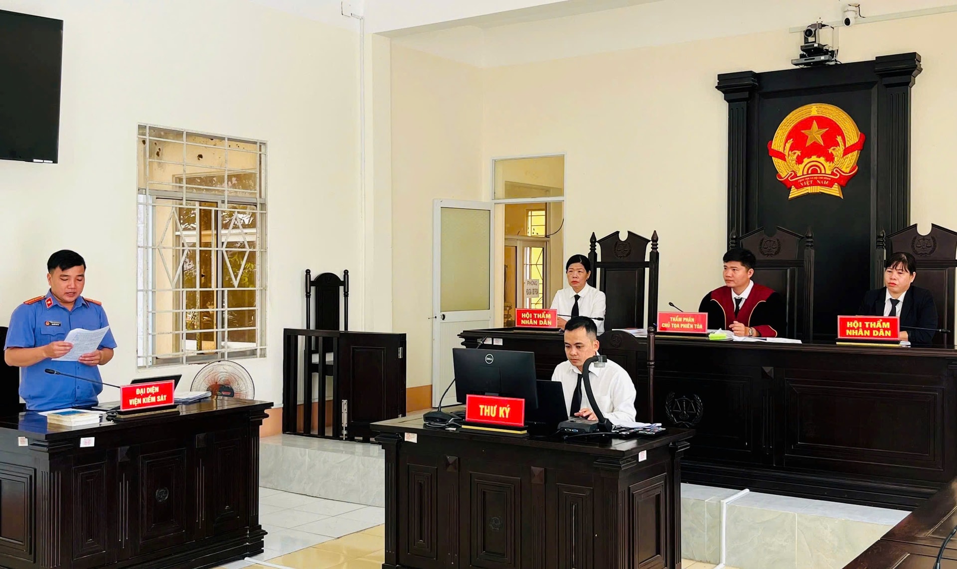 Các bị cáo tại phiên tòa xét xử sơ thẩm.