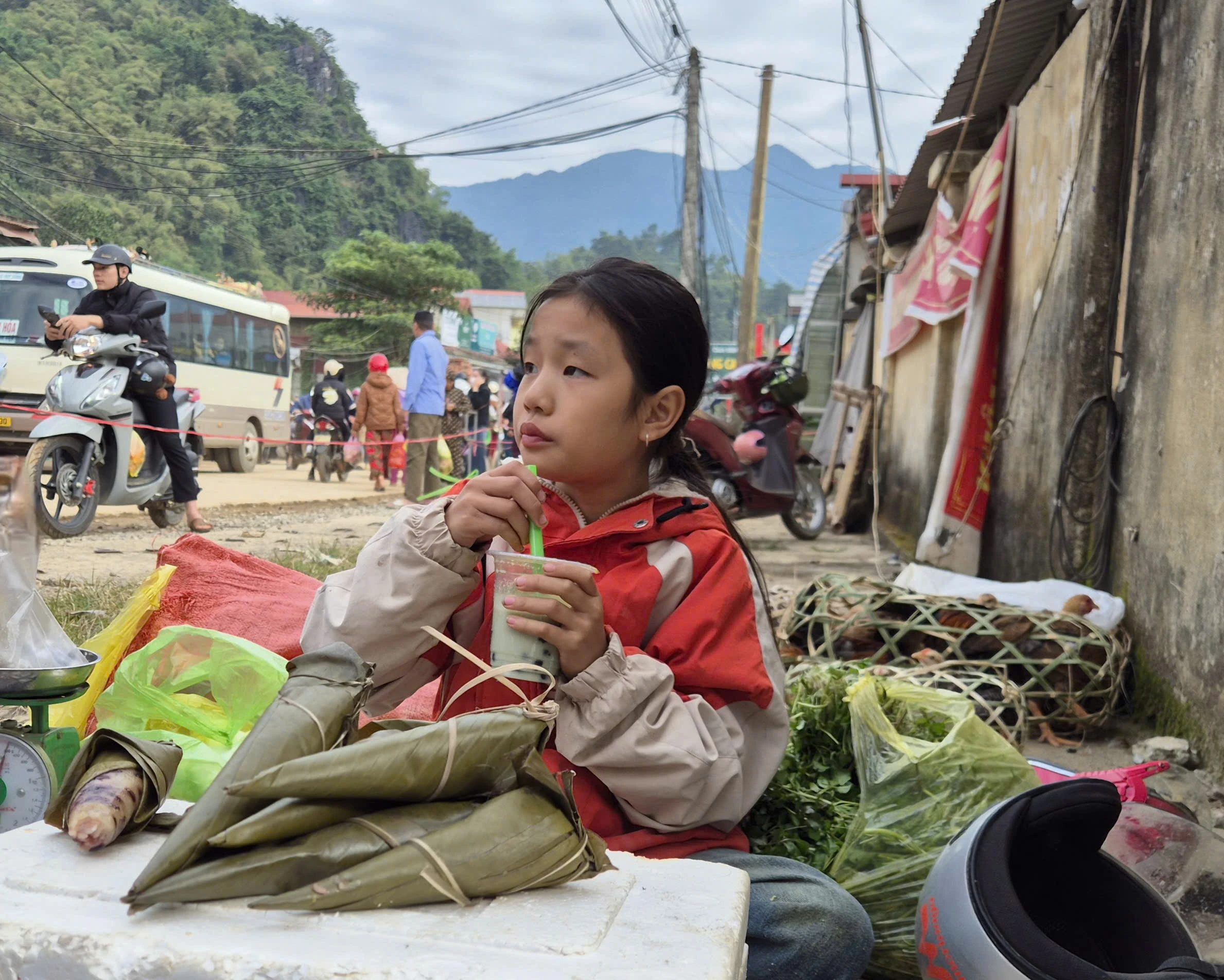 Em bé vùng cao và phút nghỉ ngơi giữa chợ phiên.