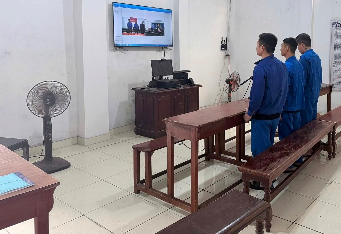 Phiên tòa xét xử trực tuyến rút kinh nghiệm, được kết nối từ phòng xử án của TAND khu vực 9 đến Trại tạm giam số 2 - Công an TP Hải Phòng.