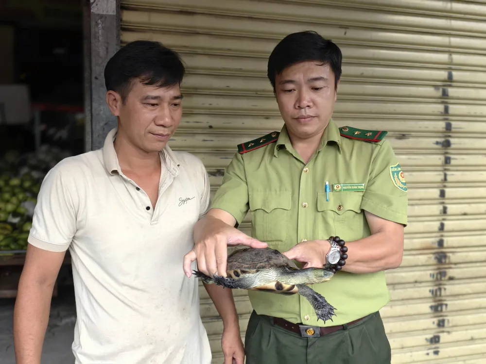 Trước đó, ông Tiến phát hiện con rùa bò sát mép đường khi đang bán trái cây. Ông đã bắt và liên hệ với cơ quan kiểm lâm, mong muốn con vật được chăm sóc, bảo tồn và thả về tự nhiên.