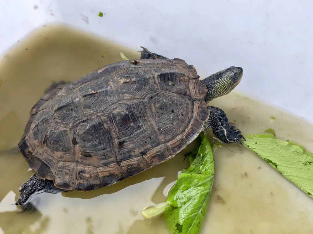 Con rùa cổ sọc được người dân bàn giao cho kiểm lâm. Ảnh: HT