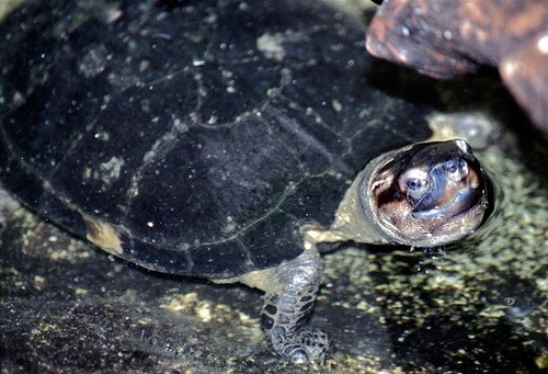 Rùa đầu đen có tên khoa học là Siebenrockiella crassicollis thuộc nhóm IIB, được Liên minh Bảo tồn Thiên nhiên Quốc tế (IUCN) phân vào loài có nguy cơ tuyệt chủng cần được bảo tồn, quản lý. Ảnh: earthpedia.earth.com.