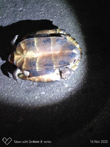 Công an xã Phước Hậu đã tiếp nhận và phối hợp với Hạt kiểm lâm khu vực Ninh Phước - Thuận Nam xác định cá thể động vật hoang dã trên là loài rùa đầm lầy đen, còn gọi là rùa đầu đen hoặc rùa đen. Ảnh: Ganjar Cahyadi.