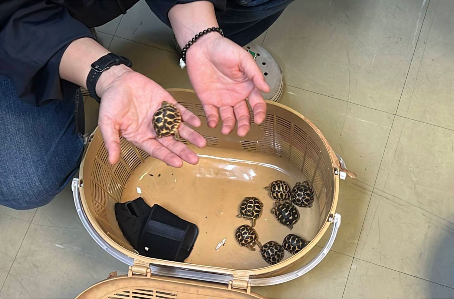 Rùa sao con nằm trong số 52 loài động vật bị tịch thu từ 3 người đàn ông Đài Loan. Ảnh: Wassayos Ngamkham.