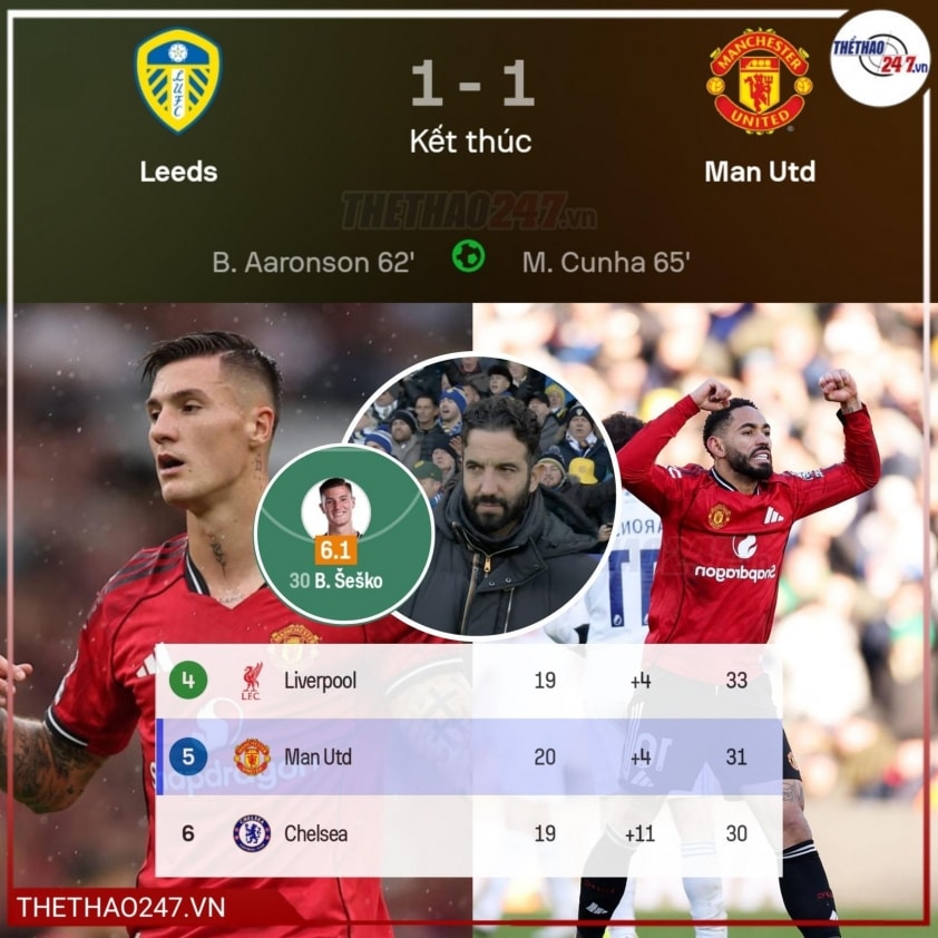 Áp lực đè nặng lên Ruben Amorim kể từ khi ông rời Sporting CP để kế nhiệm Erik ten Hag. Trận hòa 1-1 trước Leeds United vào tối ngày 4/1 đã khiến "Quỷ đỏ" lỡ cơ hội chen chân vào top 4 Premier League, thổi bùng lên những tin đồn về việc ông có thể rời ghế nóng sớm hơn dự kiến. Tuy nhiên, Amorim đã có những phản ứng đầy đanh thép trong buổi họp báo sau trận.
