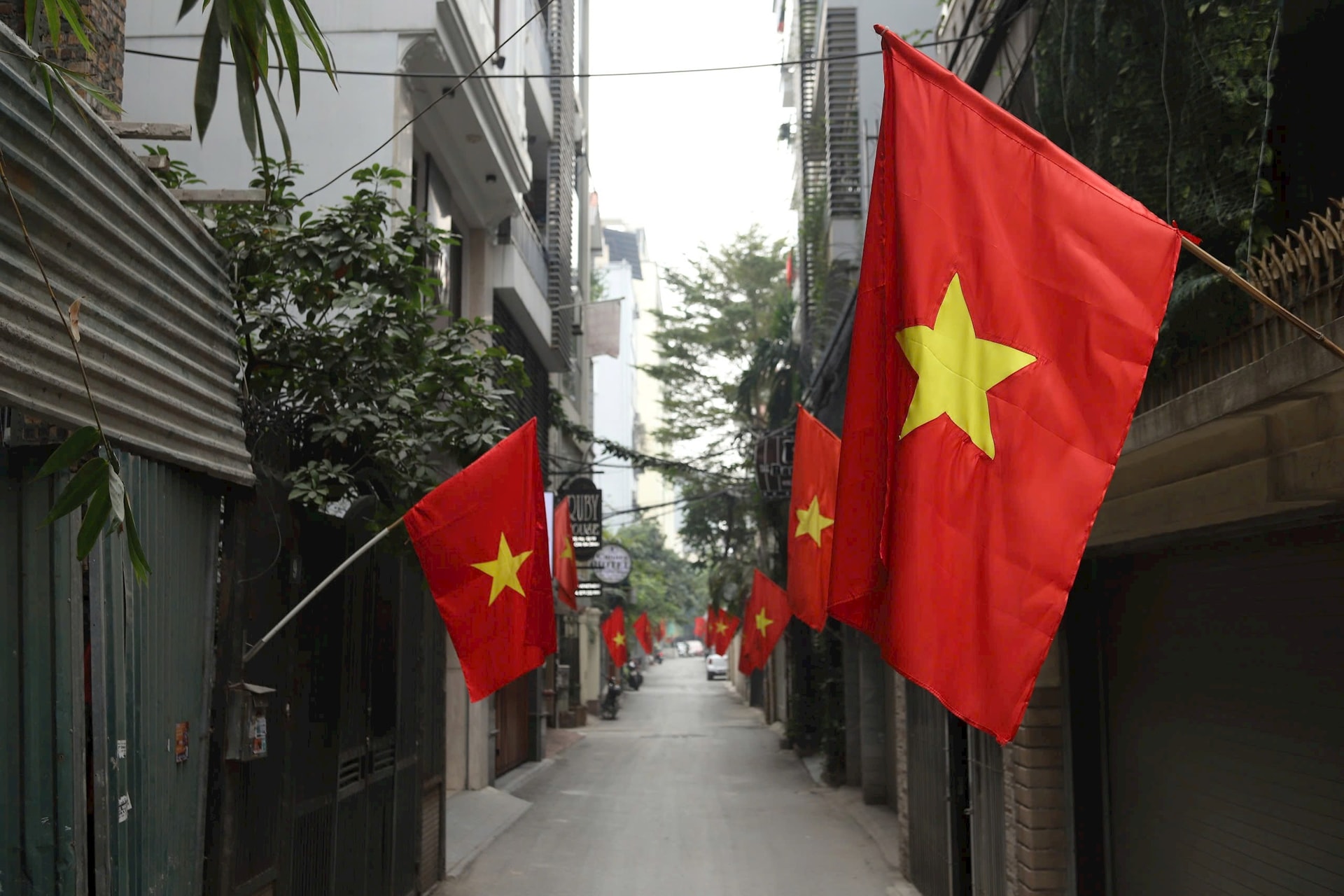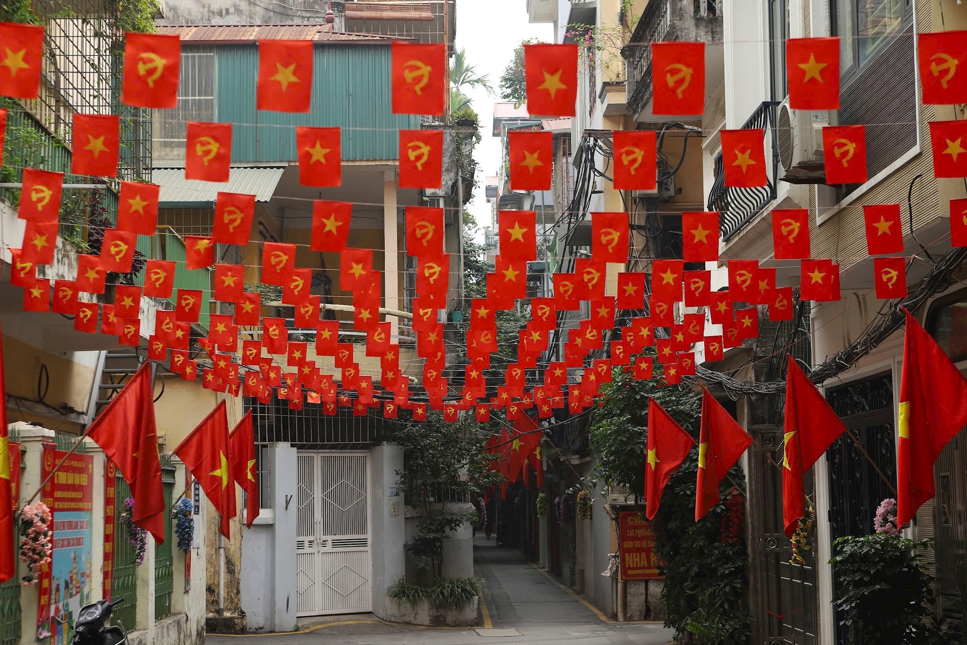 Cờ Đảng, cờ Tổ quốc "nhuộm đỏ" địa bàn dân cư tại phường Ngọc Hà. Ảnh: MH