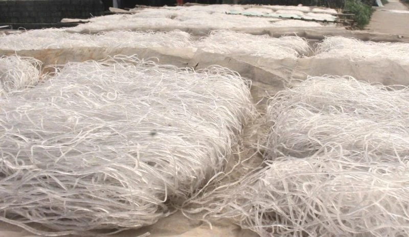 Tôi theo chân bà Thủy ra giàn phơi. Bà bật mí, miến dong phải phơi nắng vừa đủ, không gắt quá để sợi không giòn, không thiếu nắng để miến không ỉu. Những chi tiết tưởng nhỏ ấy lại làm nên cái “chất” của miến dong Vạn Thành, thứ miến khi nấu lên, sợi miến dẻo, dai, không nát và thoang thoảng mùi thơm của dong nguyên chất.