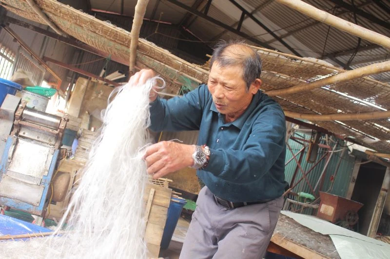 Ông Nguyễn Văn Hào, Phó Giám đốc Hợp tác xã miến dong Vạn Thành phấn khởi khi sản phẩm truyền thống của địa phương được thị trường ưa chuộng.