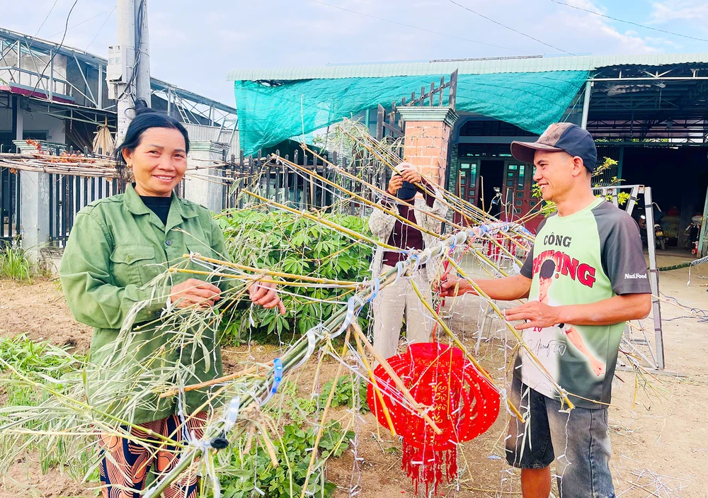 “Mọi nhà cùng nhau dựng cây nêu khiến không khí ngày Tết thêm vui tươi hơn. Bà con cũng đoàn kết, chung sức trang trí cho quê hương thêm sạch đẹp”, bà Tiệm nói.