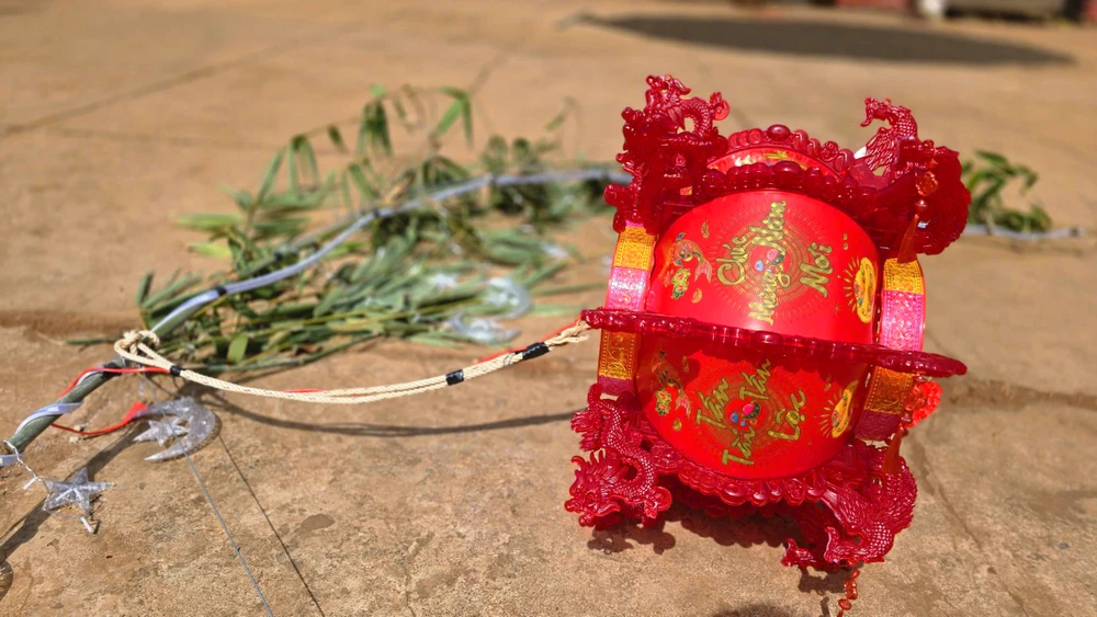 Cây nêu ngày Tết được người dân trang trí vô cùng đẹp mắt.