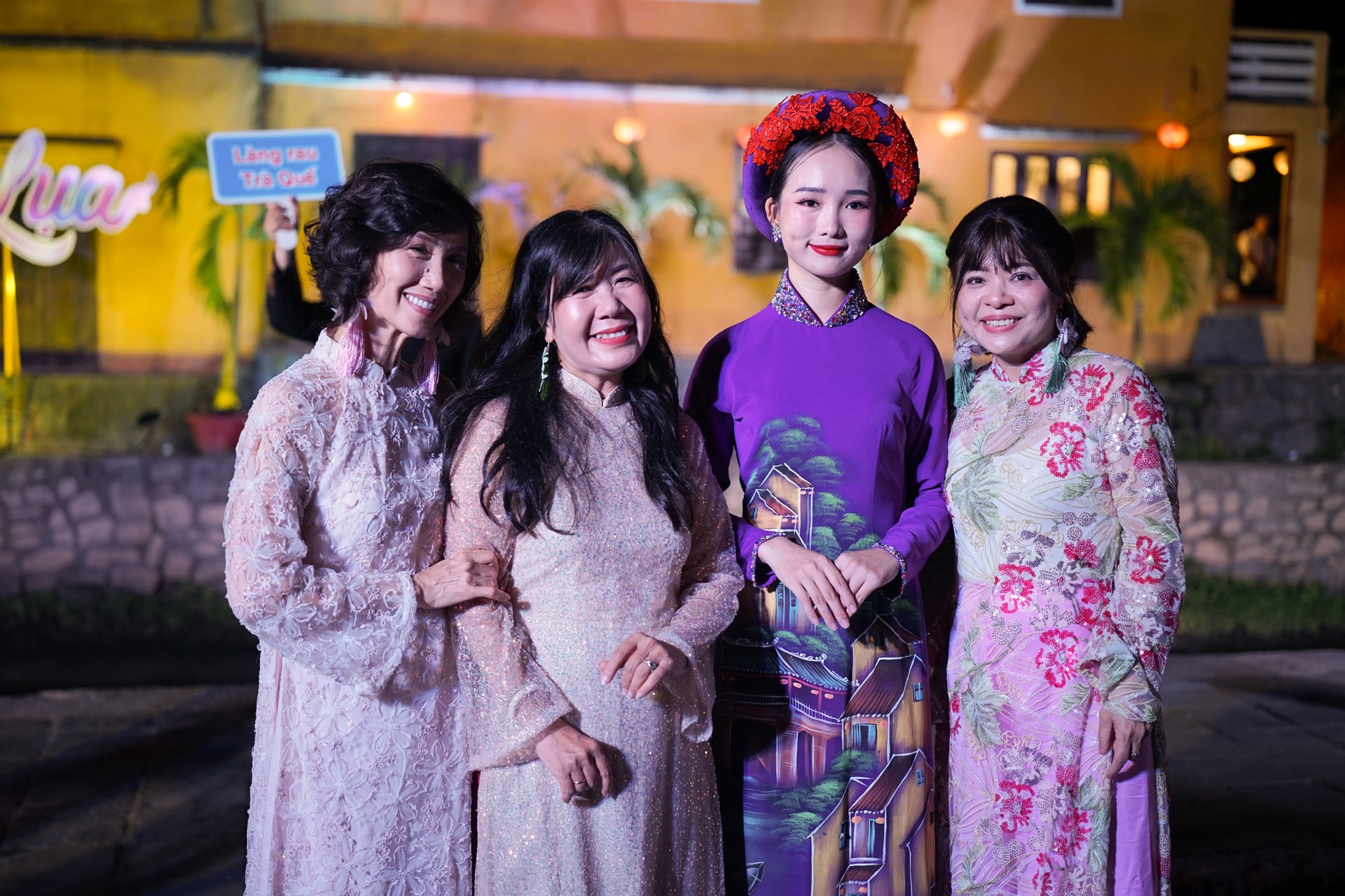 Du khách "check-in" bên những tà áo dài duyên dáng tại chương trình. Ảnh: XUÂN SƠN
