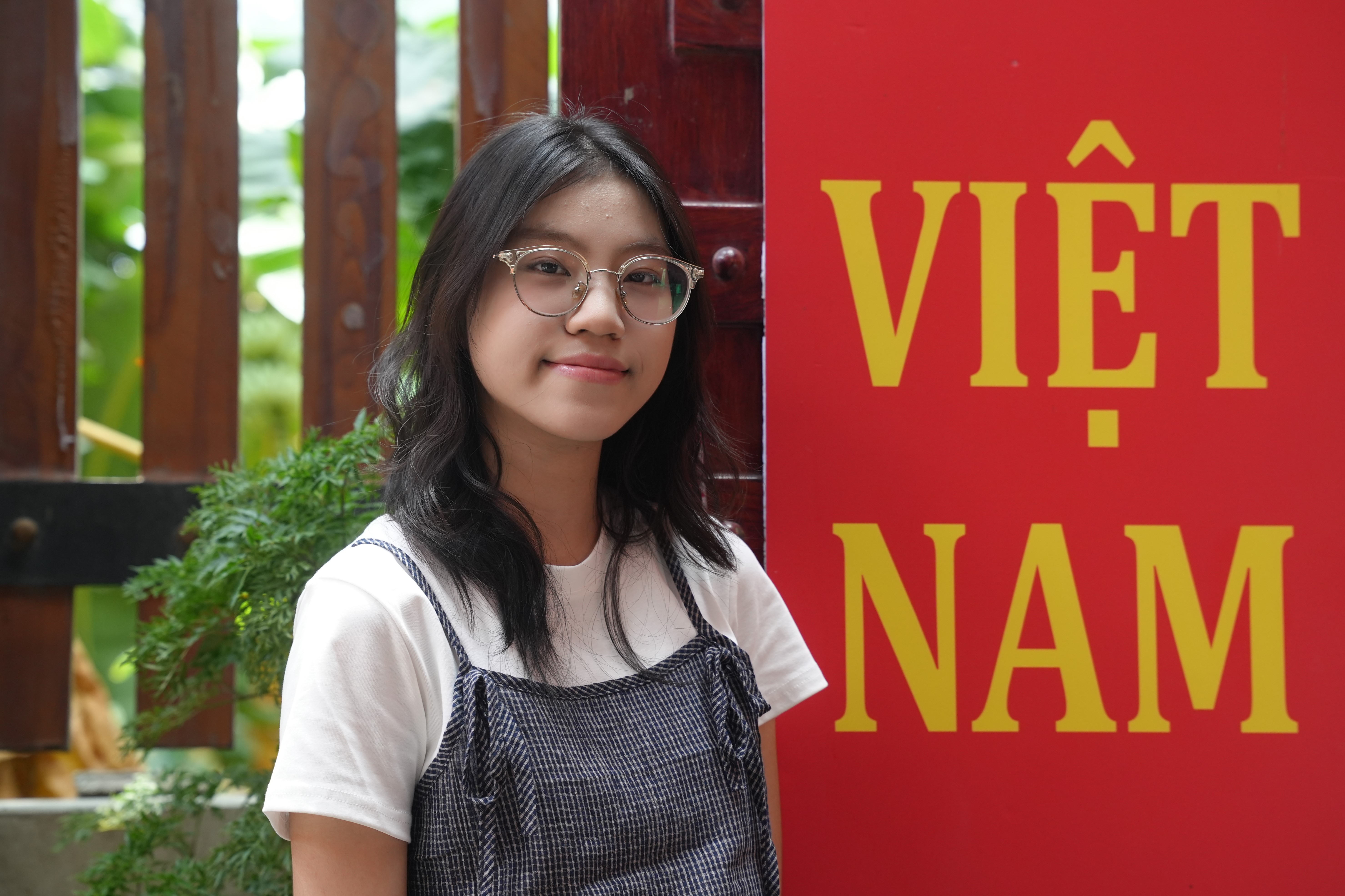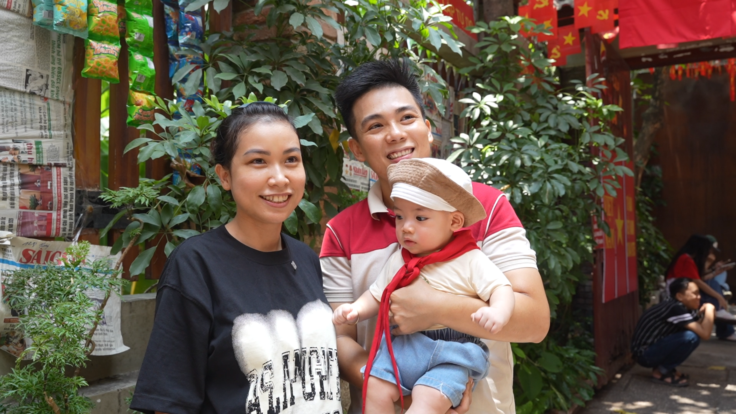 Bước vào không gian ngập tràn sắc đỏ, chị Thu Hằng bày tỏ: "Nhìn vào lá cờ thấy vui, hạnh phúc, tự hào và trân trọng hòa bình hôm nay” – Chị Nguyễn Thu Hằng, ngụ phường An Hội Tây, TP.HCM, nói.