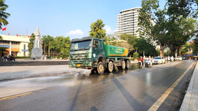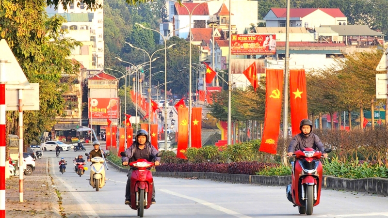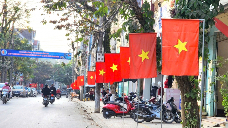 Công tác trang trí, tuyên truyền phục vụ Đại hội Đảng được triển khai đồng bộ trên các tuyến đường chính.