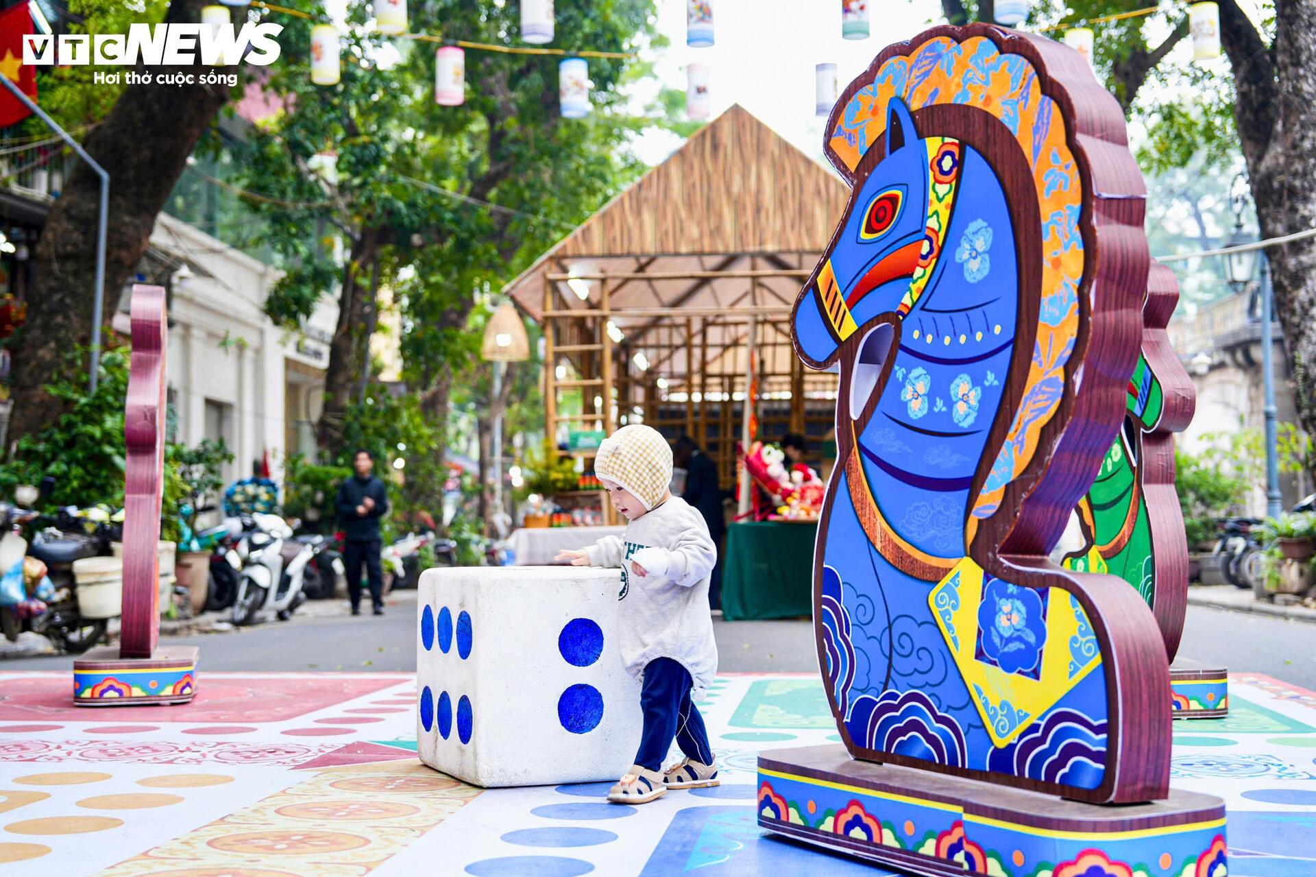Tại đây, người dân và du khách có thể tham gia nhiều hoạt động văn hóa, nghệ thuật như hát xẩm, viết thư pháp, gói bánh chưng, nặn tò he, tô vẽ tranh Đông Hồ, vẽ mô hình ngựa hay trải nghiệm vẽ socola 3D.