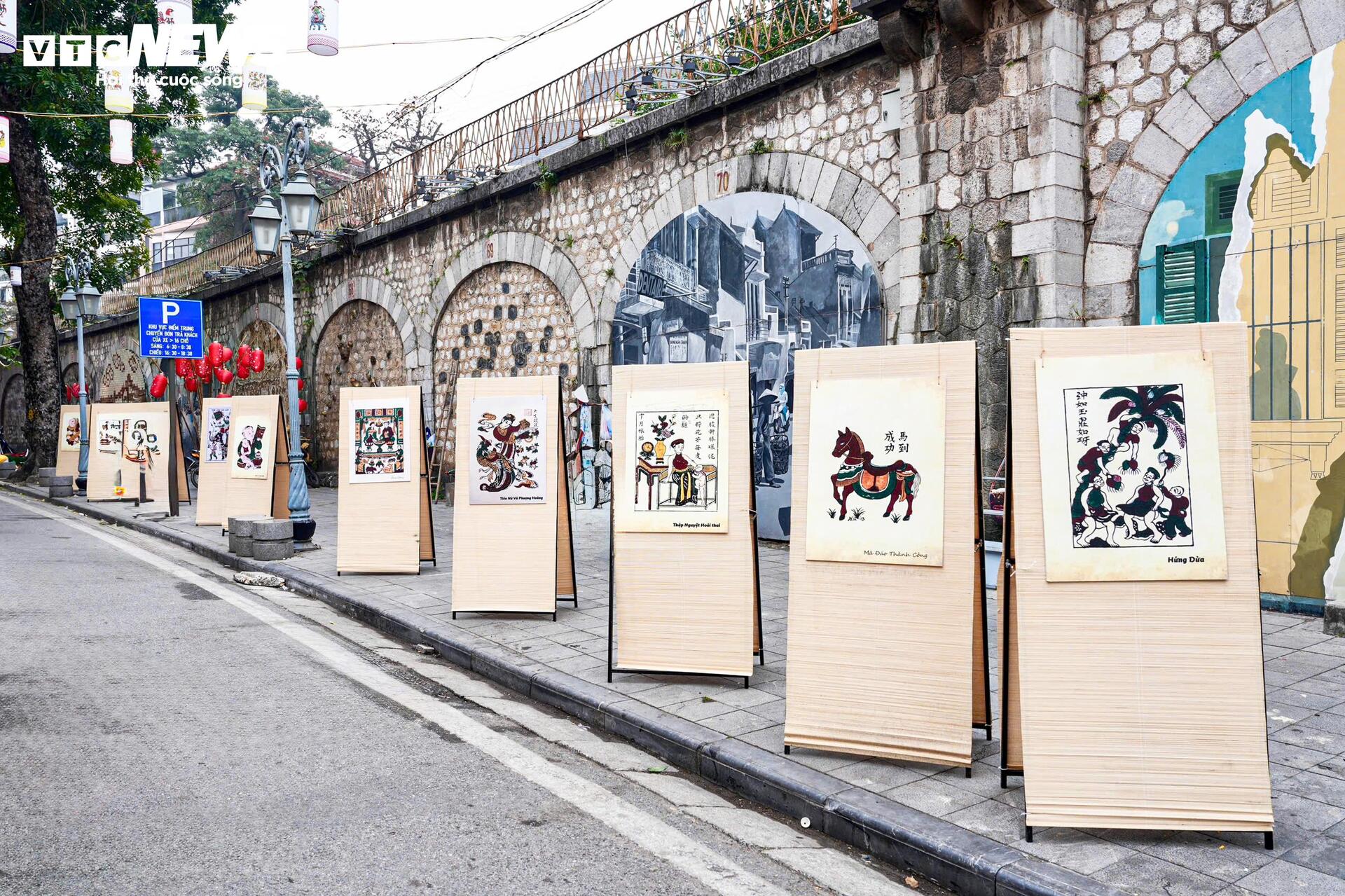 Trên phố bích họa Phùng Hưng, không gian được trang trí rực rỡ với nhiều cụm tiểu cảnh, mô hình mang đậm không khí Tết.