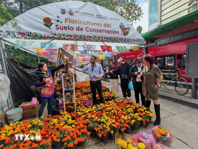Chia sẻ với phóng viên TTXVN tại Mexico, Bà María José-chủ một cửa hàng hoa tại hội chợ trên cho biết: “Tôi đến từ vùng trồng hoa Tláhuac, phía Đông Nam thủ đô Mexico City. Tôi tham gia Hội chợ hoa Cúc vạn thọ này hàng năm. Đây là điểm nhấn quan trọng trước thềm lễ hội “Ngày Người chết”. Ở đây, hoa được bày bán theo từng loại và công dụng từ những bó hoa cúng tổ tiên, vòng trang trí bàn thờ, cho đến những cánh hoa rải đường dẫn linh hồn về nhà.”
