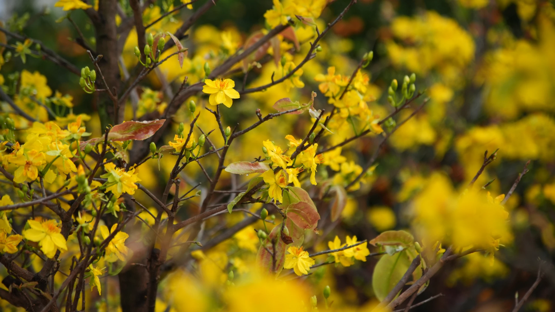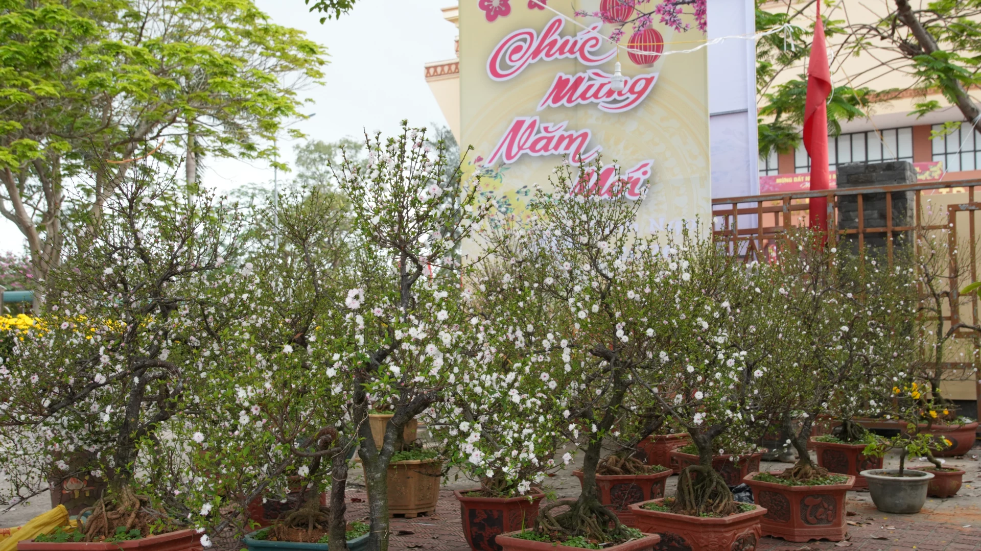 Cùng với mai vàng, anh đào và quất, nhất chi mai cũng được bày bán trong dịp Tết.