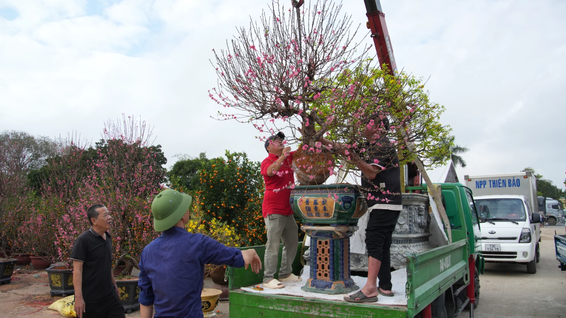 Người dân chọn được cây mai, cây đào ưng ý nhất.