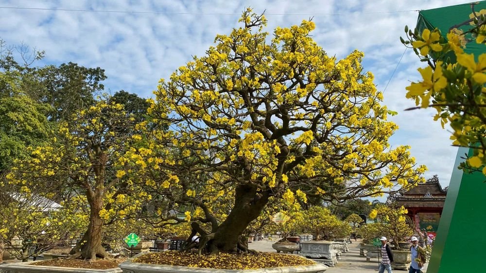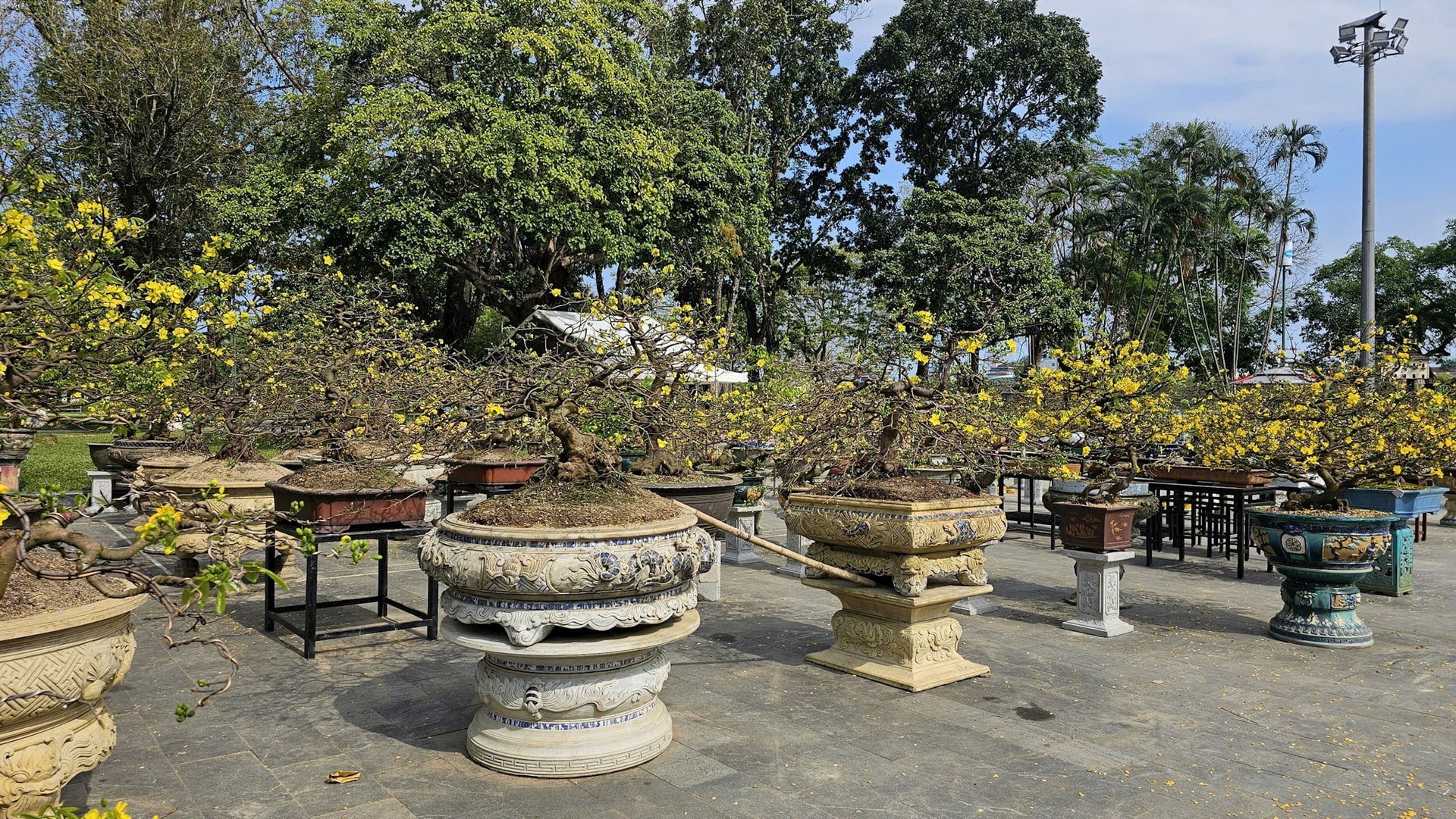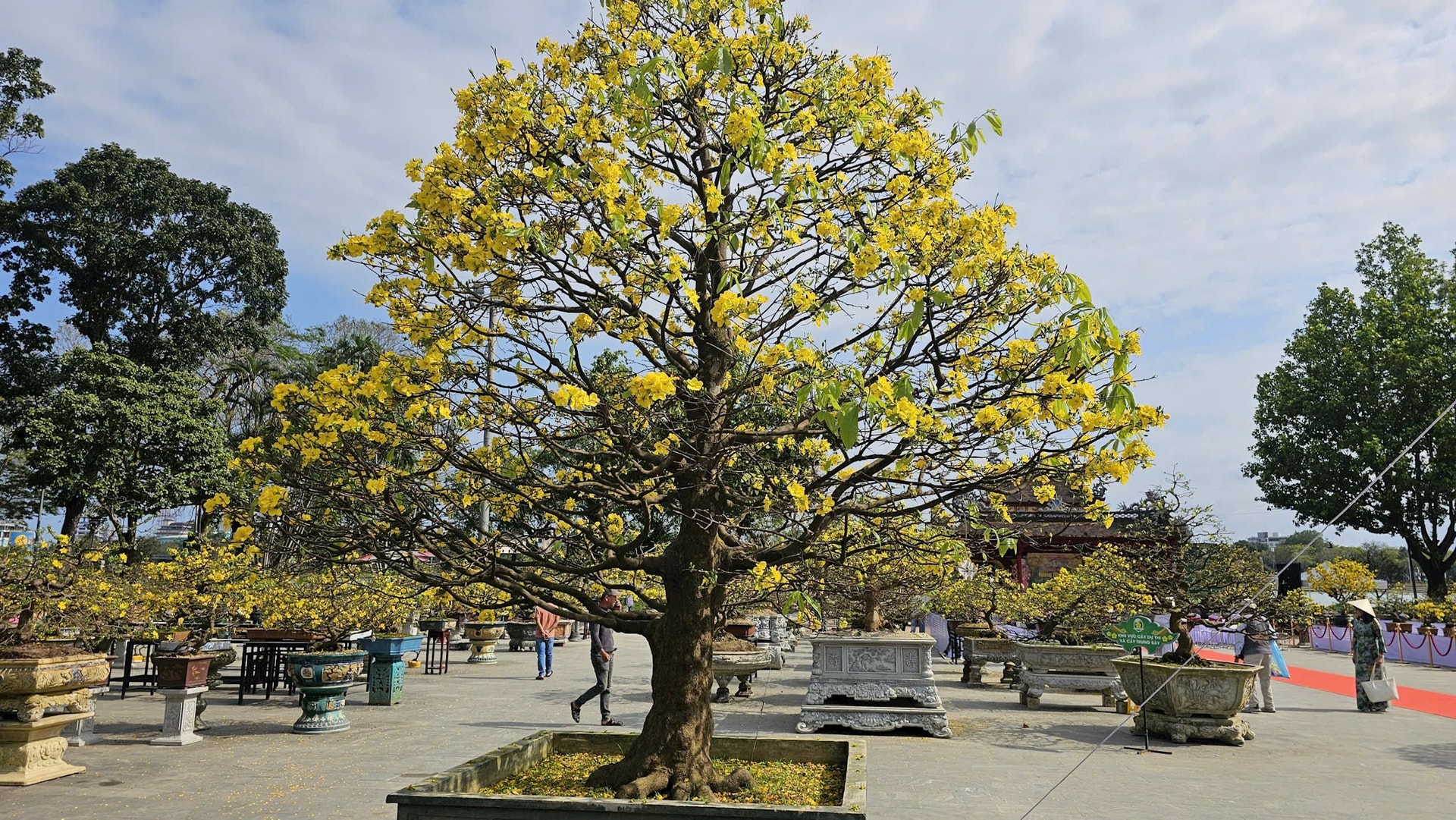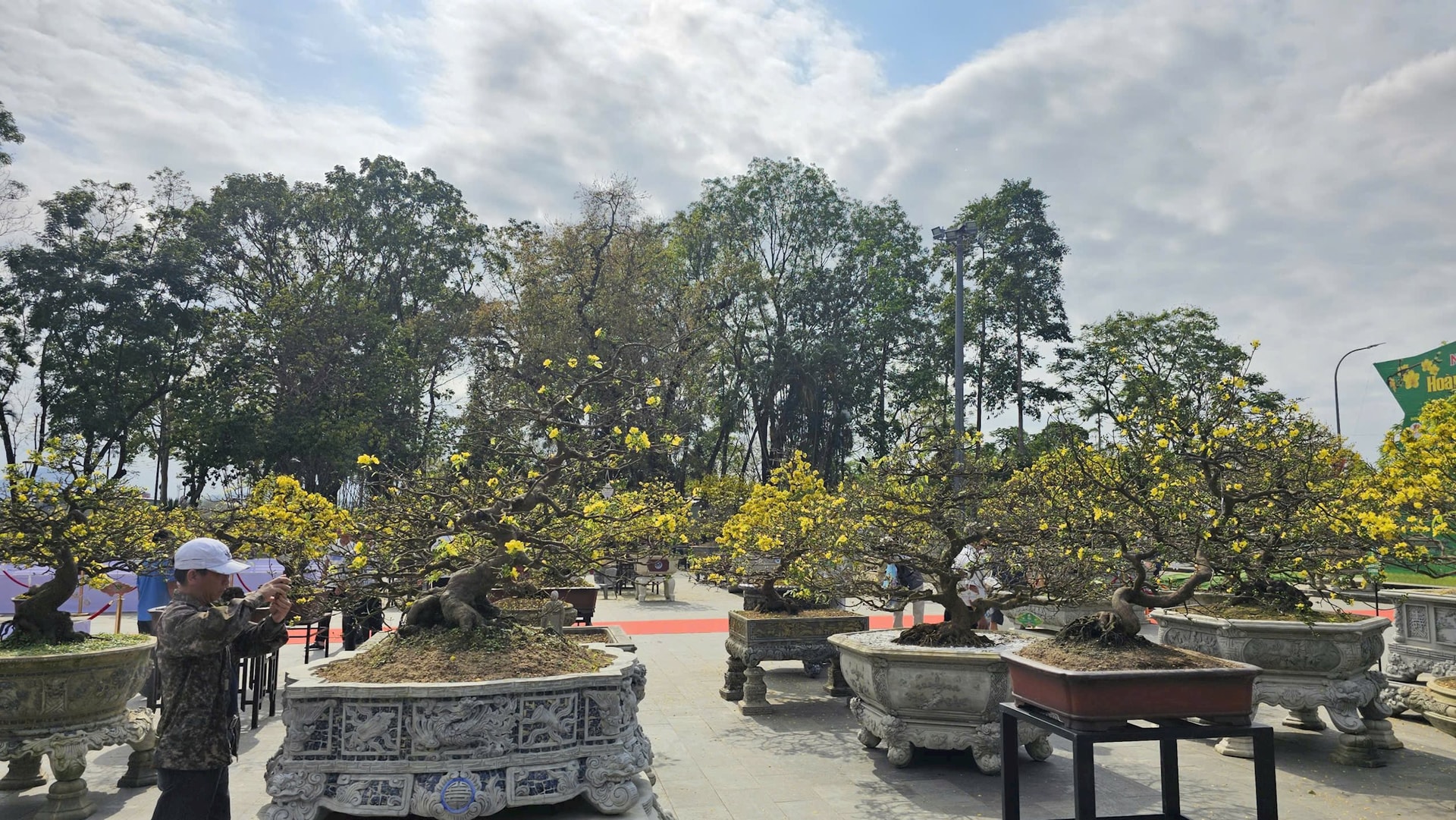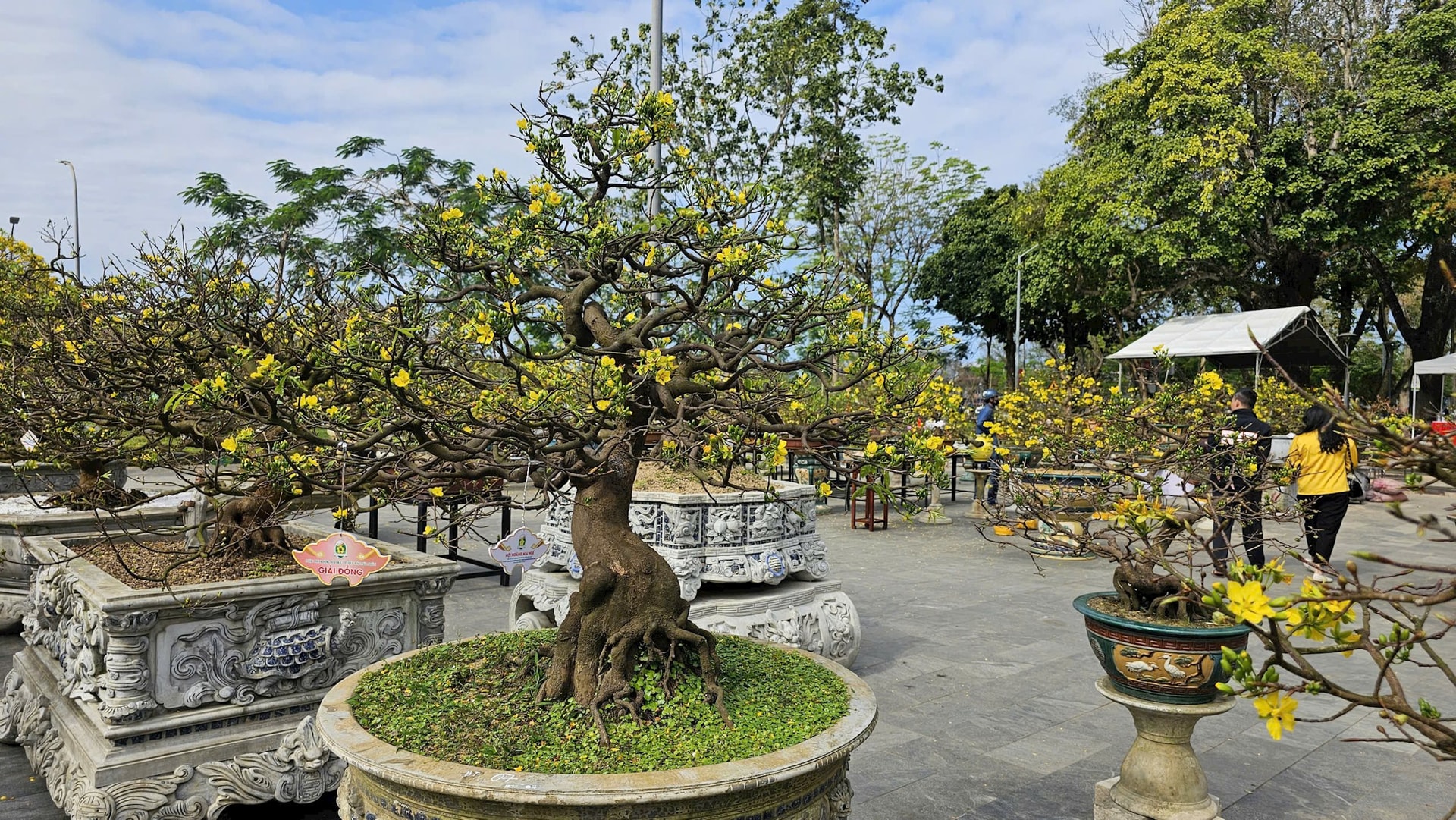 Nhiều gốc hoàng mai cổ thụ được trưng bày tại vị trí trang trọng giữa Phu Văn Lâu.
