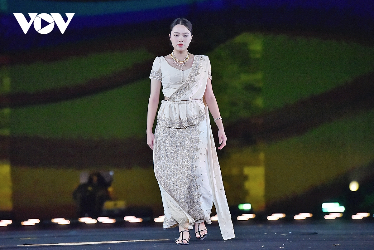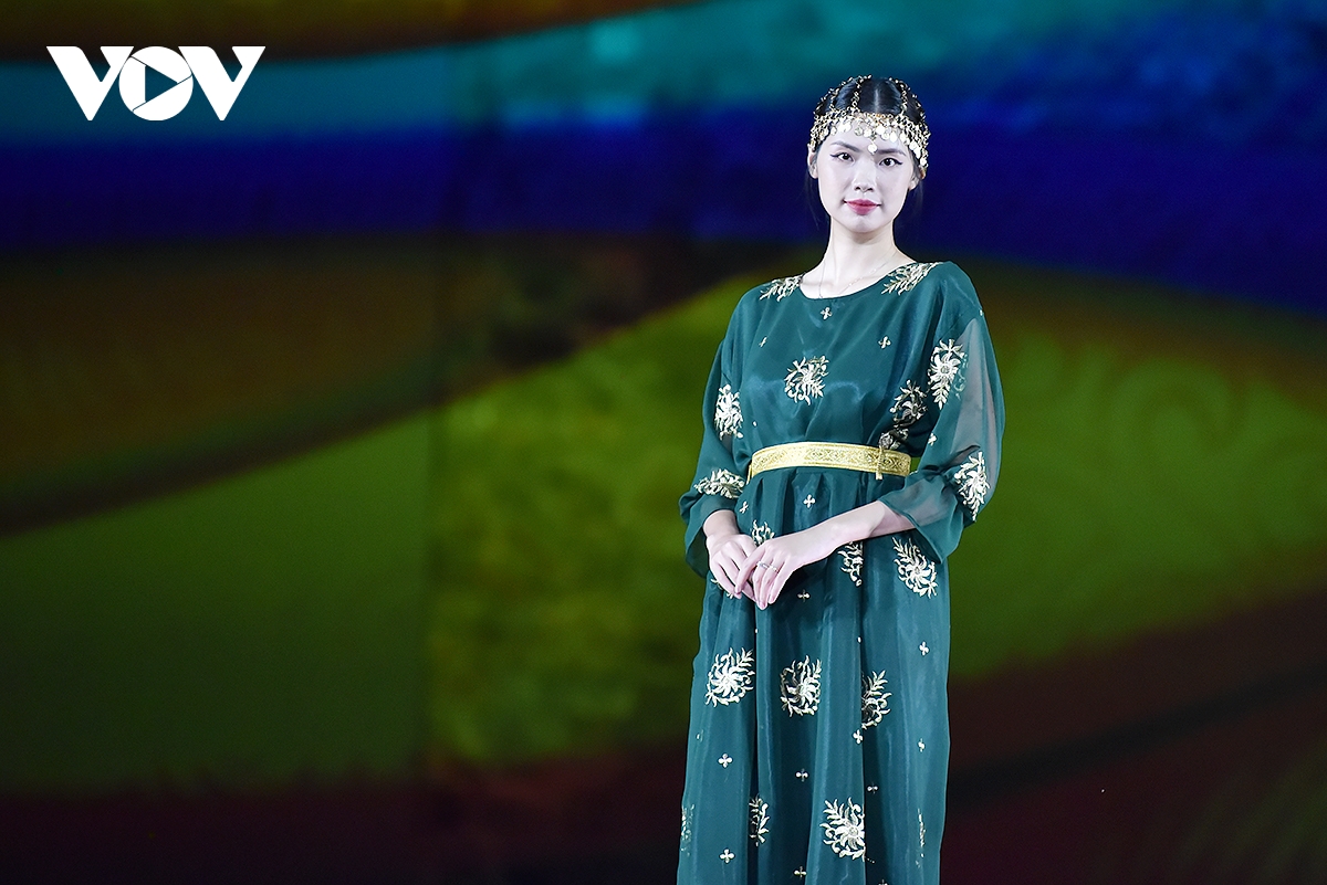 Trang phục kết hợp tạo vẻ thanh tao với di sản vượt thời gian, thể hiện niềm tự hào dân tộc.