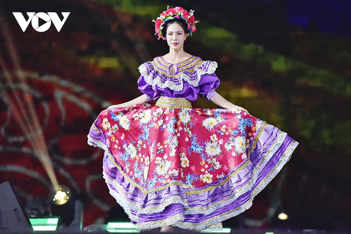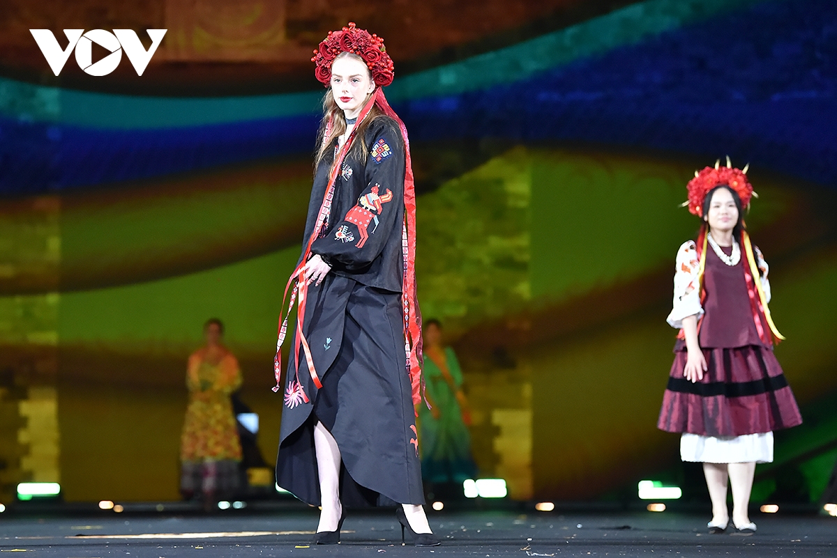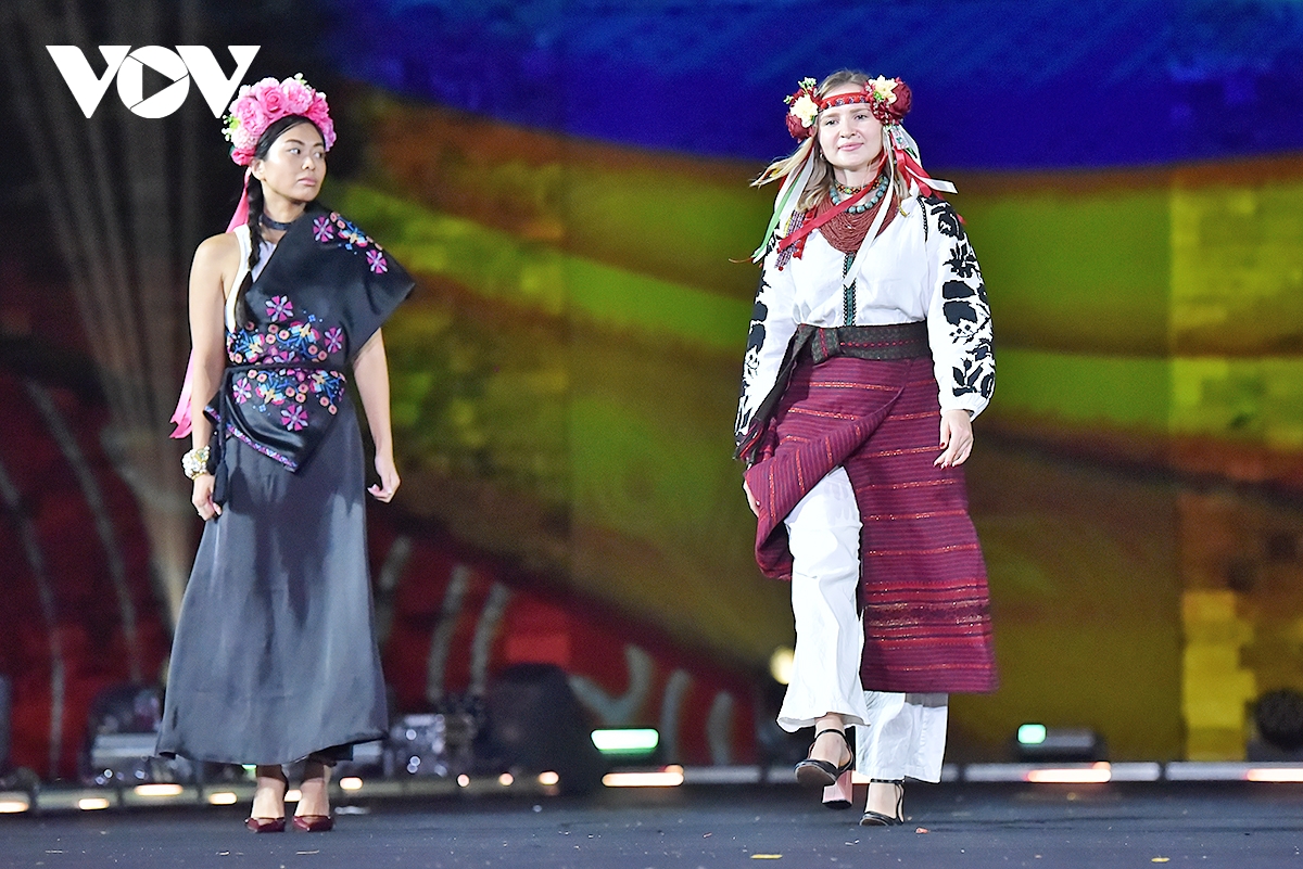 Màn trình diễn của 19 bộ sưu tập trang phục truyền thống từ các châu lục đã tạo nên không gian lễ hội đa sắc màu, thắm đượm tình hữu nghị và kết nối văn hóa.