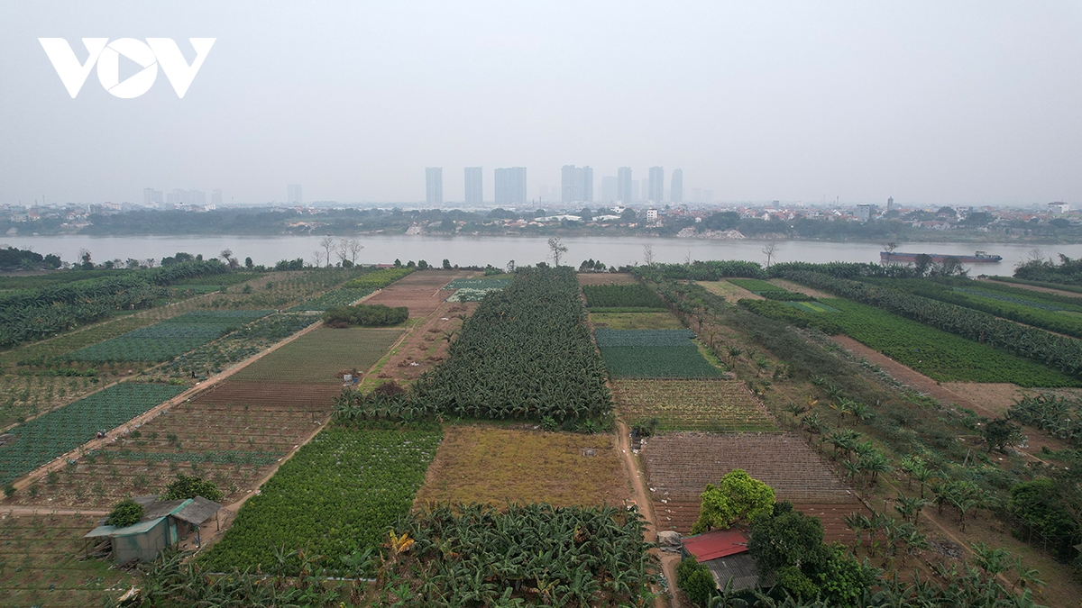 Chỉ còn 10 ngày nữa là tới Tết Nguyên đán, các hộ dân trồng chuối vụ Tết bãi sông Hồng đang tất bật chăm sóc những vườn chuối xanh mướt, kỳ vọng một vụ mùa được giá.