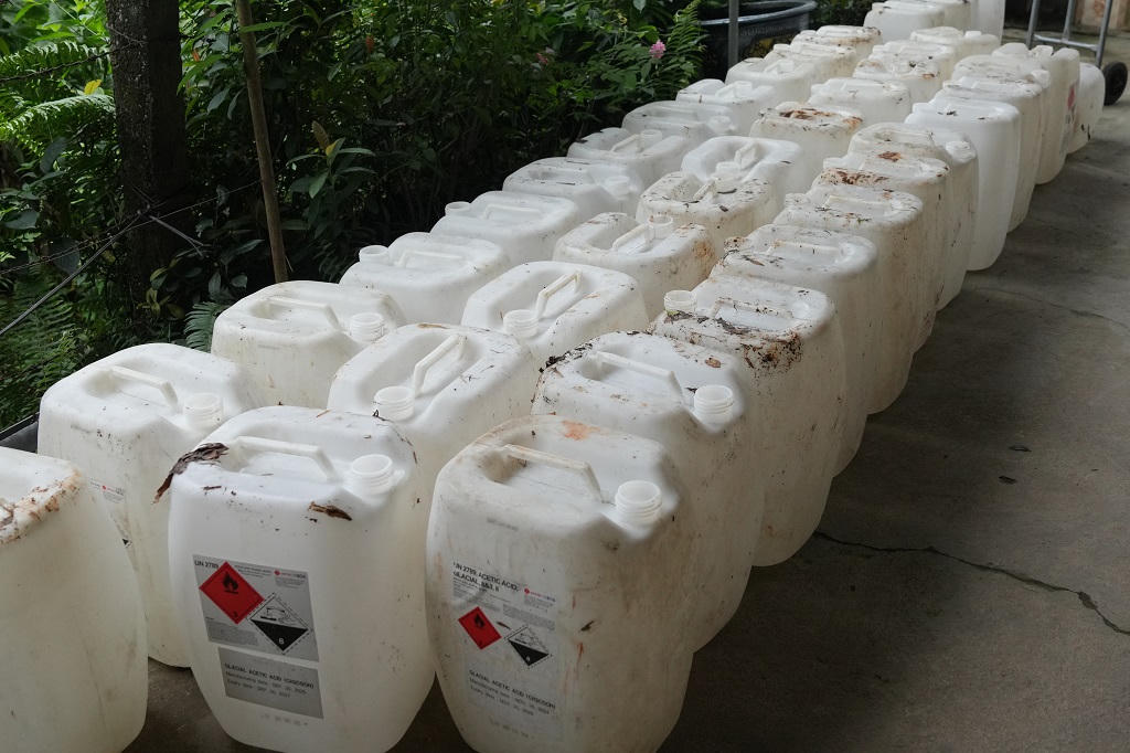 Axit axetic thu giữ được tại cơ sở sản xuất giấm